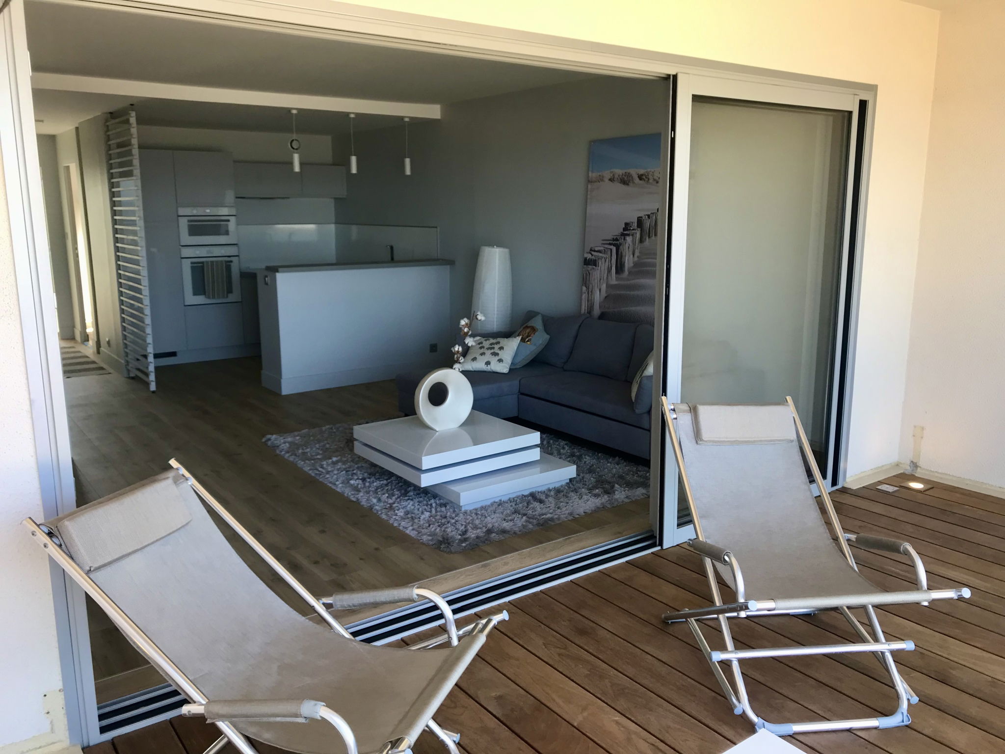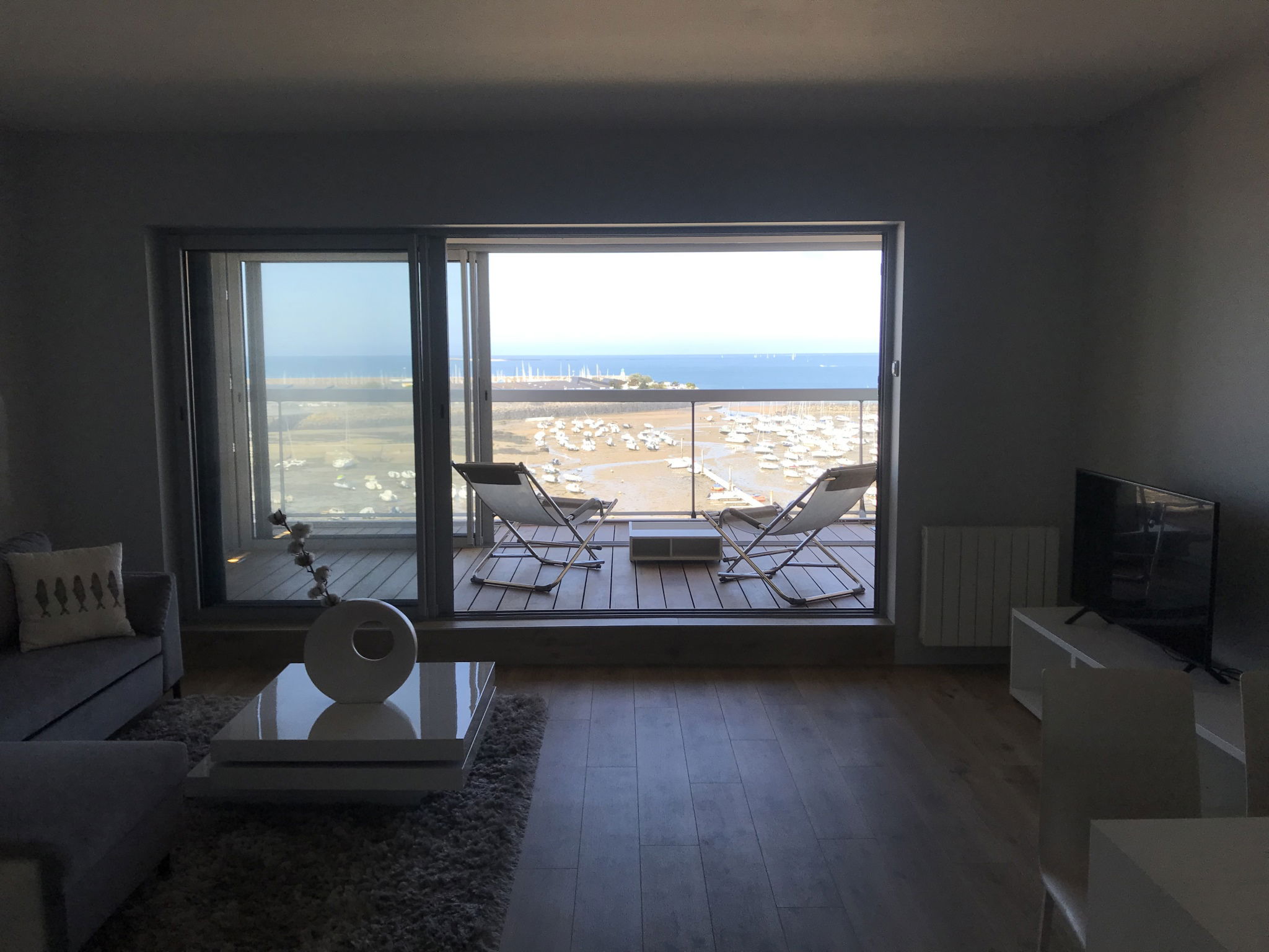 Superb type 2bis apartment on the top floor of a secure residence facing the sea including: Entrance to living room with open kitchen (toaster, kettle, Nespresso machine, microwave, oven, hob, extractor, fridge + freezer) - West-facing living room (TV) on terrace of 12 m2 with superb sea view - Bedroom n ° 1 with 160x200 bed + wardrobe - Bedroom n ° 2 cabin with 2x90x190 bunk beds (CAUTION 200x200 duvets) - Shower room with shower Italian - WC - Garage in the basement
