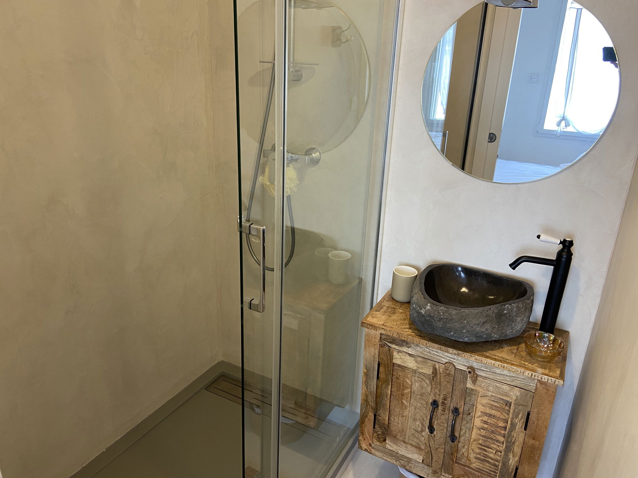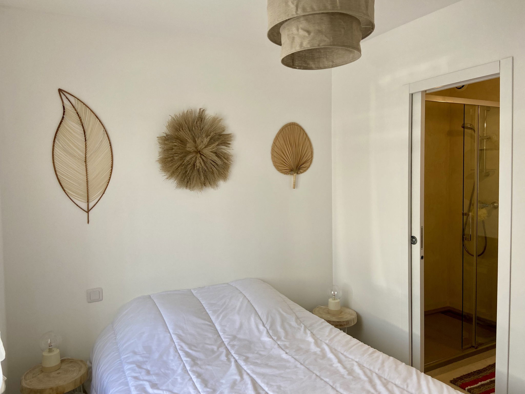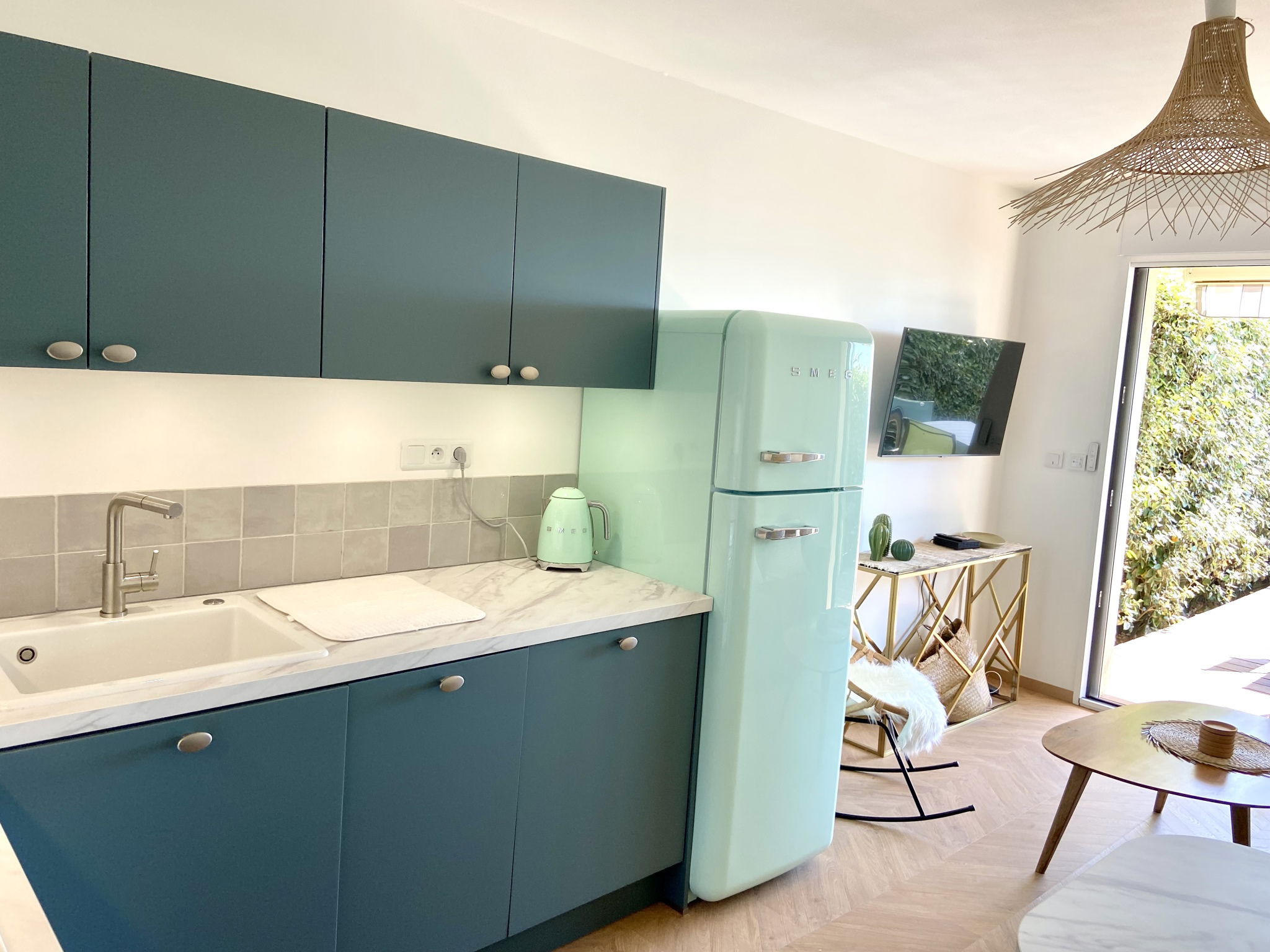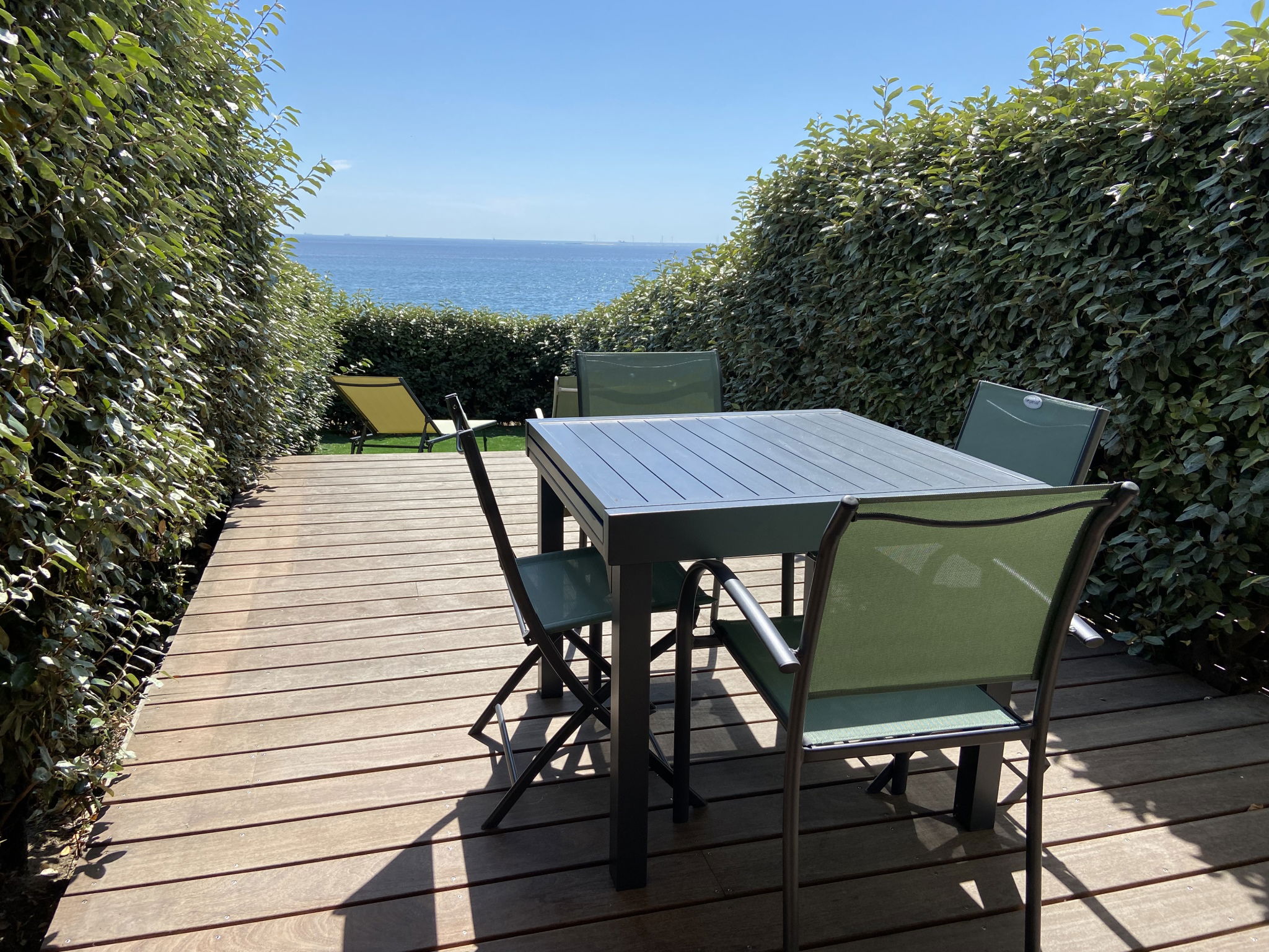 Come and enjoy the seaside in this superb apartment completely redone with quality materials and equipment - Entrance with cupboard - Living room with fitted and equipped kitchen (fridge / freezer - Microwave - Oven - Induction hob - Hood - Toaster - Kettle - Dishwasher - Washer-dryer) lounge area with TV and sea view - Terrace with furniture facing South/West - Bedroom with 140x190 bed + chest of drawers - Bathroom with walk-in shower - WC - Outdoor parking - Bike room - WIFI