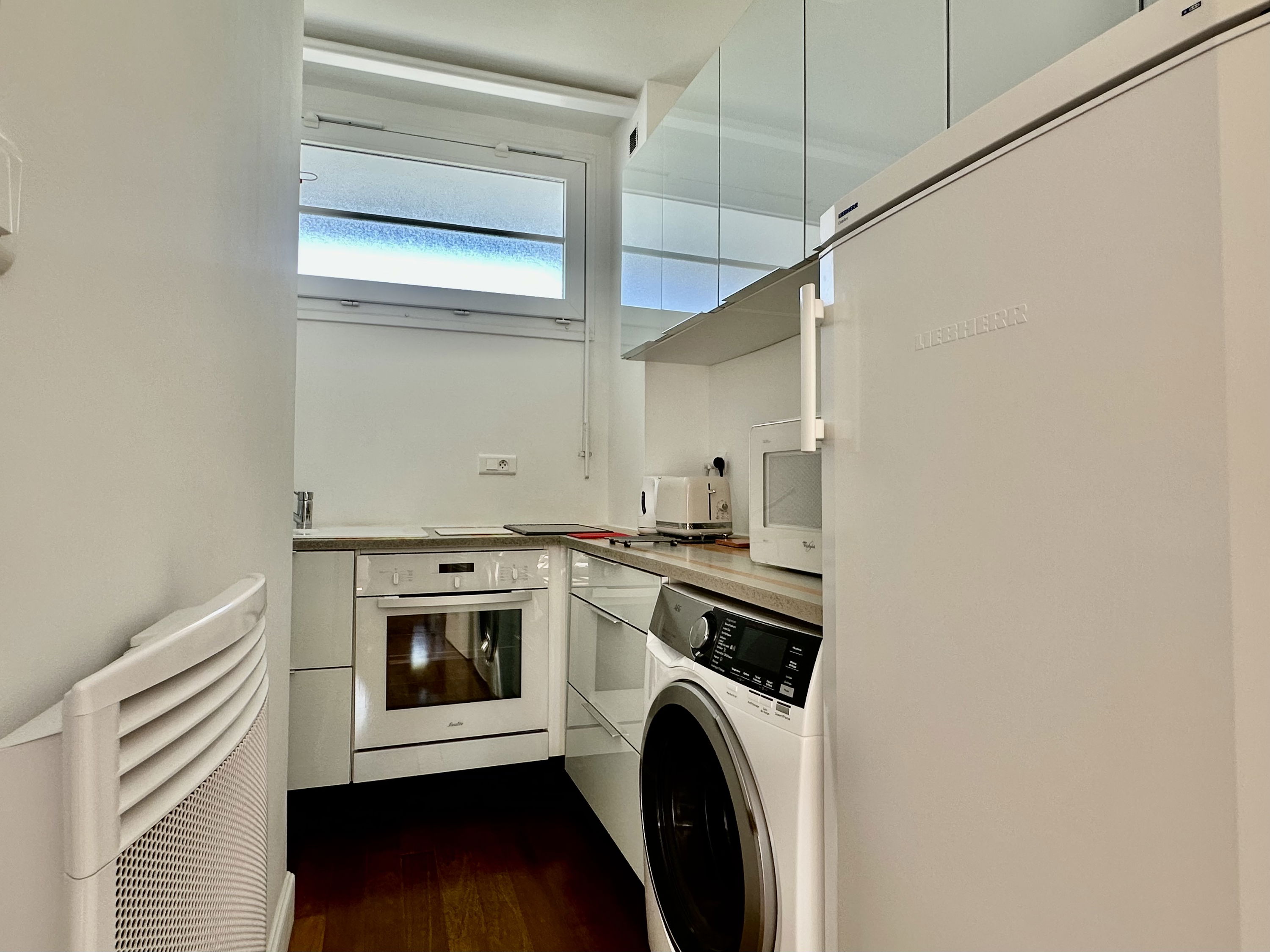 Studio 2 steps from the Benoît beach on the 4th floor comprising: Entrance - Shower room with WC (window opening) - Living room on quiet south-facing terrace (trundle beds 90/190 + sofa bed 140/190) with large fitted wardrobe and flat screen TV - Semi-open kitchen on living room (Induction hob - Oven - Microwave - Refrigerator - washer-dryer).