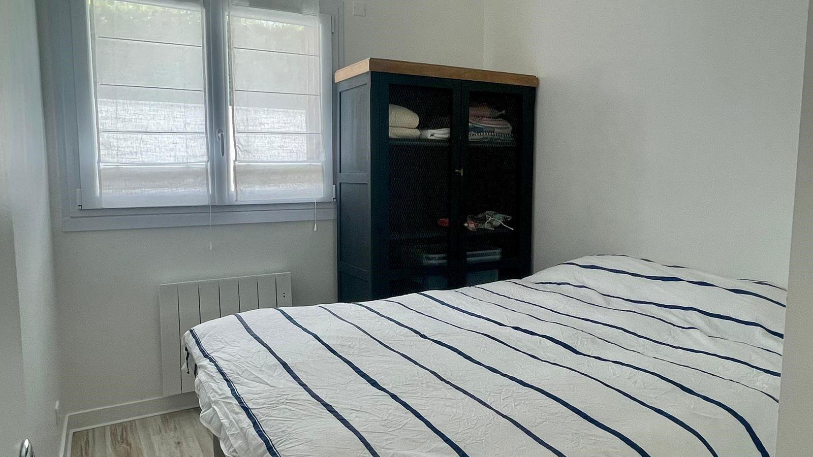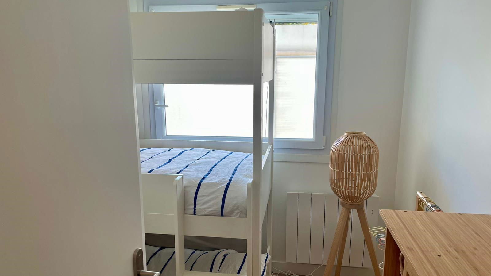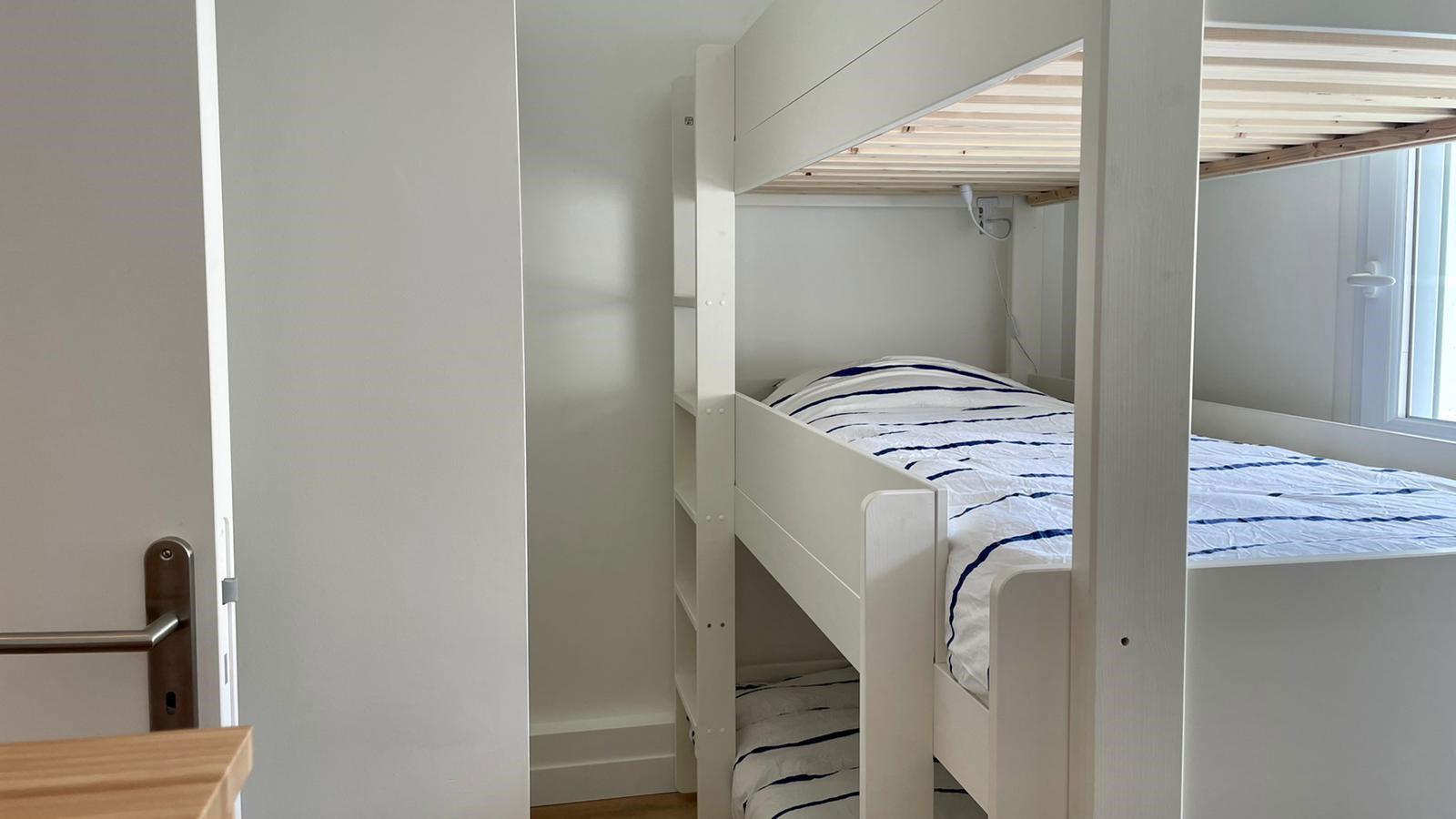 Type 3 apartment renovated in 2020 comprising: an entrance / hallway - Living room / living room opening onto a south-facing terrace - Fitted and equipped US kitchen (multifunction oven, sink, induction hob, extractor, fridge with freezer, dishwasher) - Bedroom n °1 with a 140/200 bed - Shower room (shower, sink, heated towel rail, washer-dryer) - Bedroom n°2 with 3 bunk beds (90/200) - Private outdoor parking