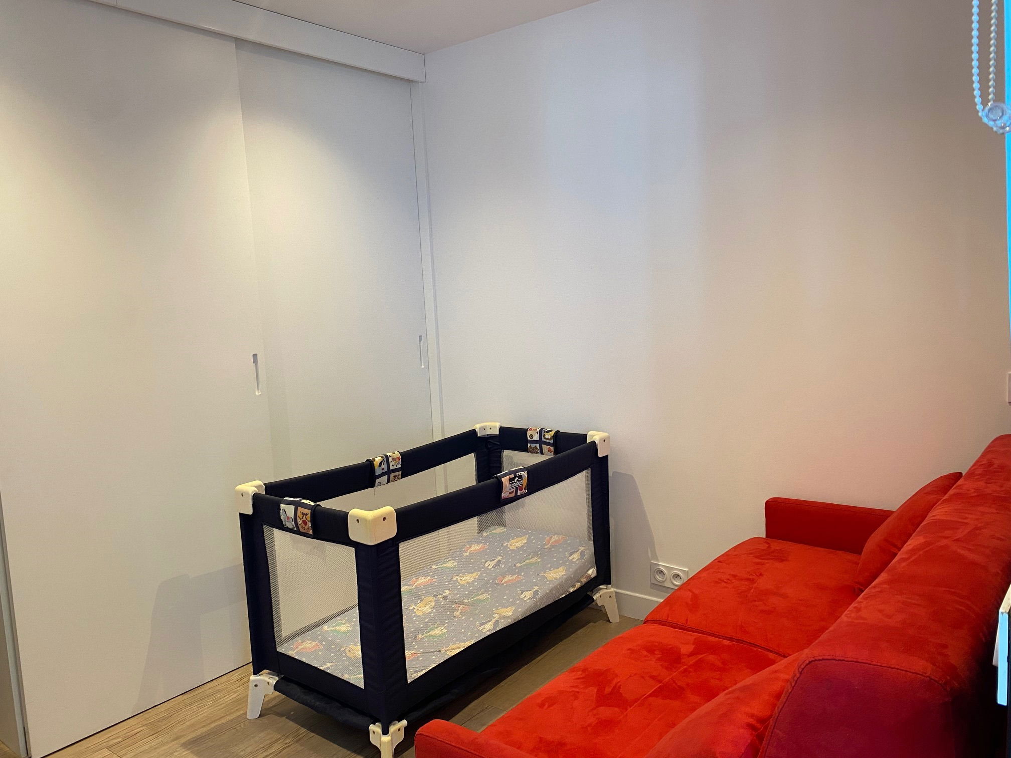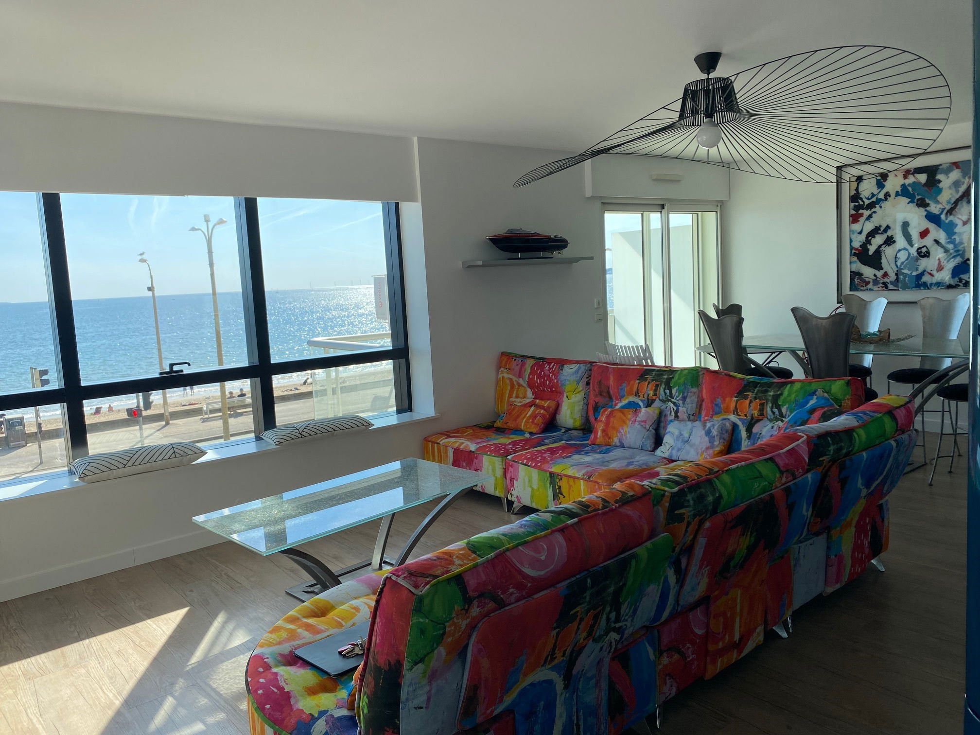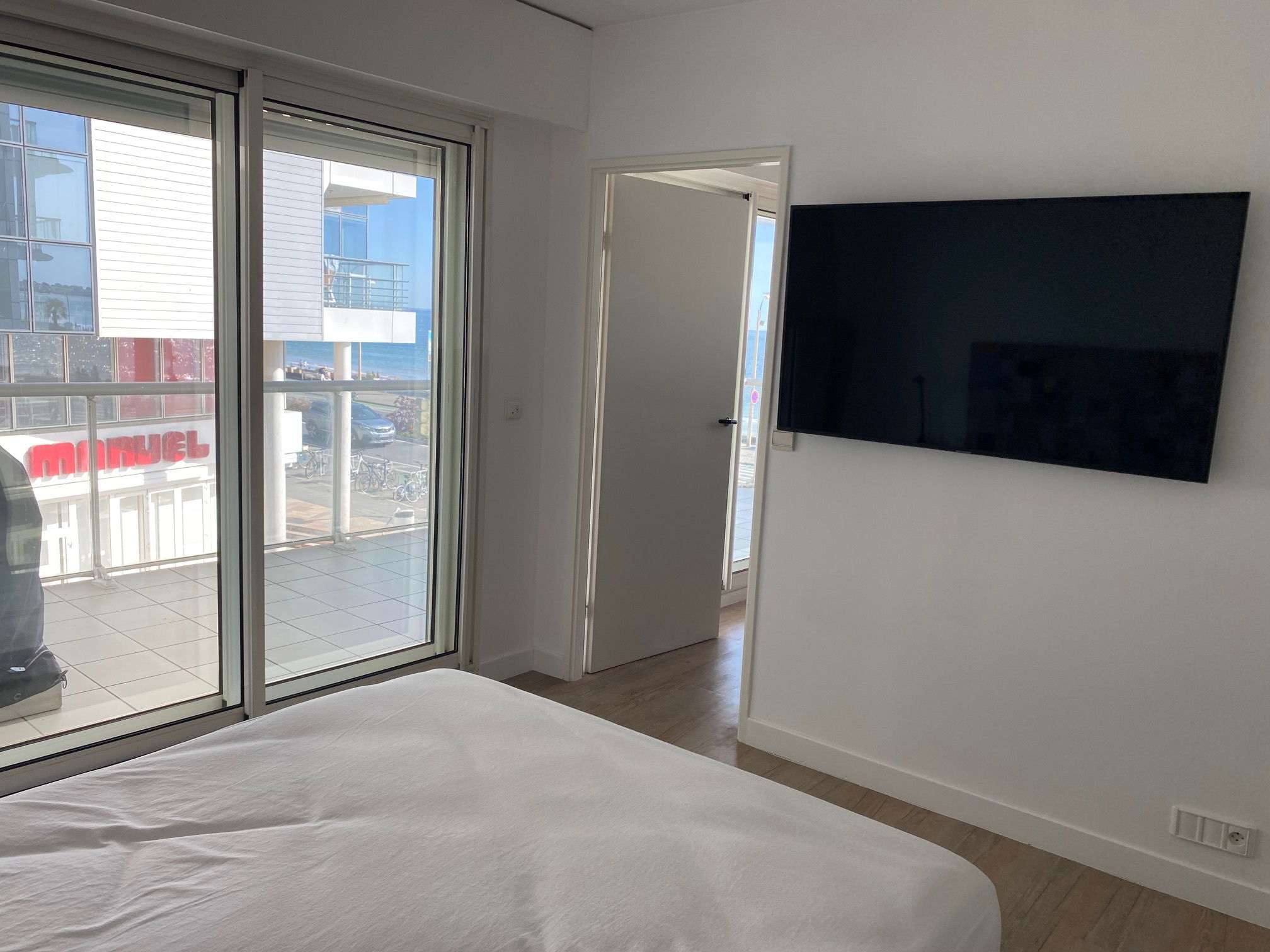 Right in the center, ideally located, this apartment will offer you everything on foot for your holidays. It includes an entrance with cupboard/wardrobe - Independent toilet - Beautiful living room with windows opening onto the sea, flat screen TV, large sofa, terrace facing the South sea and East terrace with sea view - US kitchen with fridge/freezer, dishwasher , induction hob, extractor, oven, microwave) - Bedroom n°1 with sofa bed 140/190, flat screen TV + cot, cupboard/wardrobe and adjoining shower room - Bedroom n°2 open onto the terrace East with 160/200 bed, flat screen TV, cupboard/wardrobe and adjoining shower room with WC and washer-dryer. Parking in the basement ("normal" car) - Internet wifi
