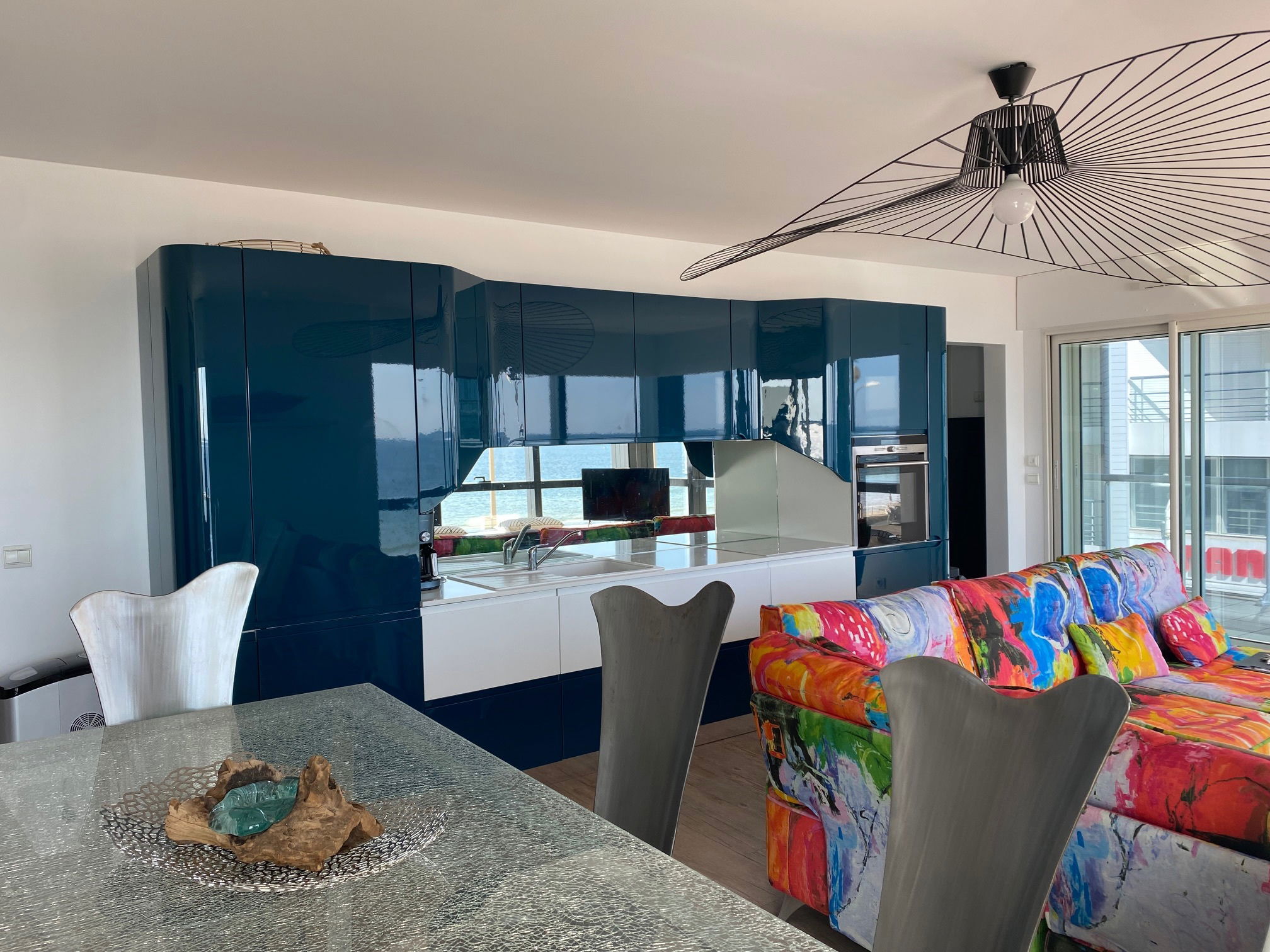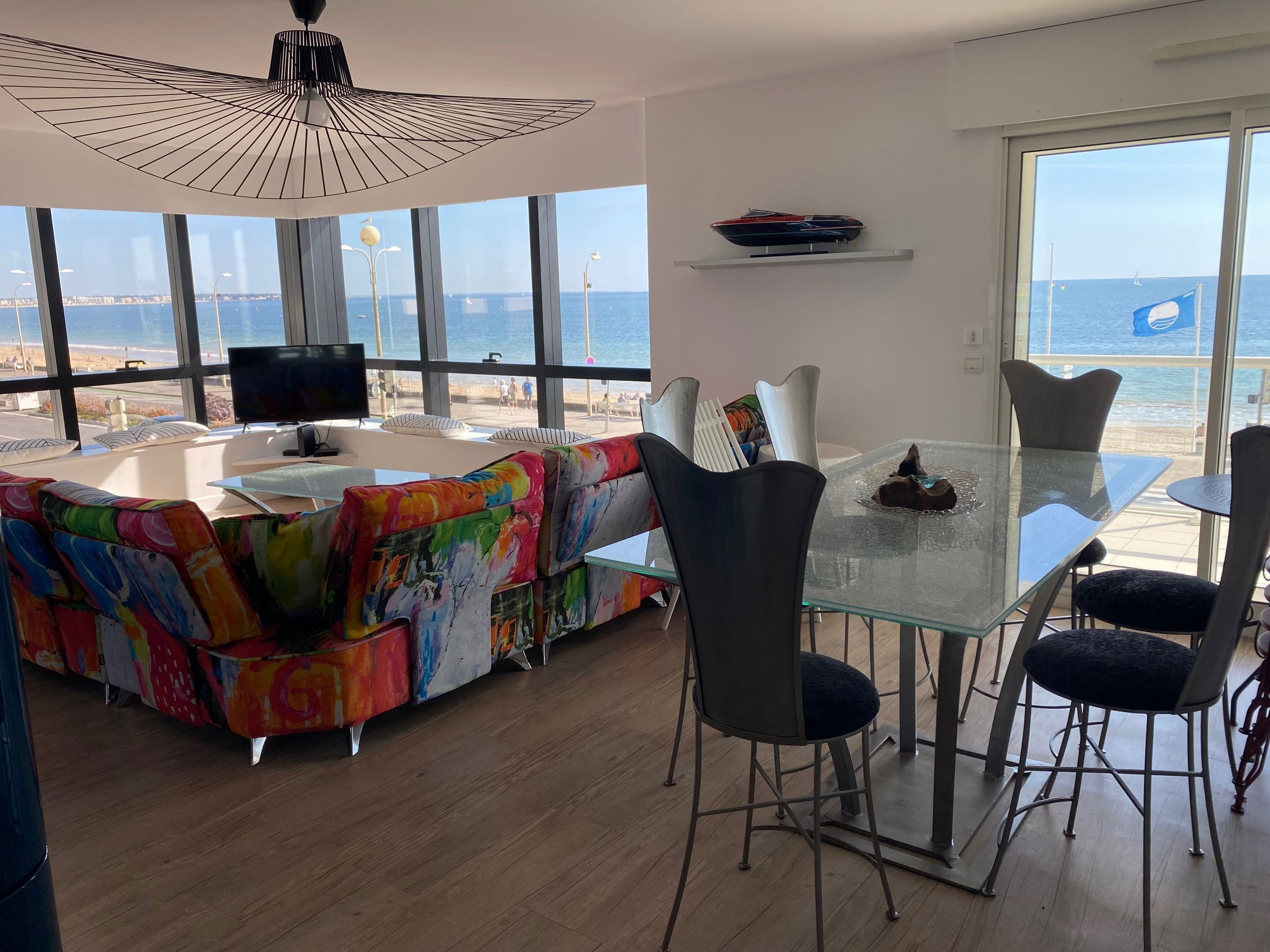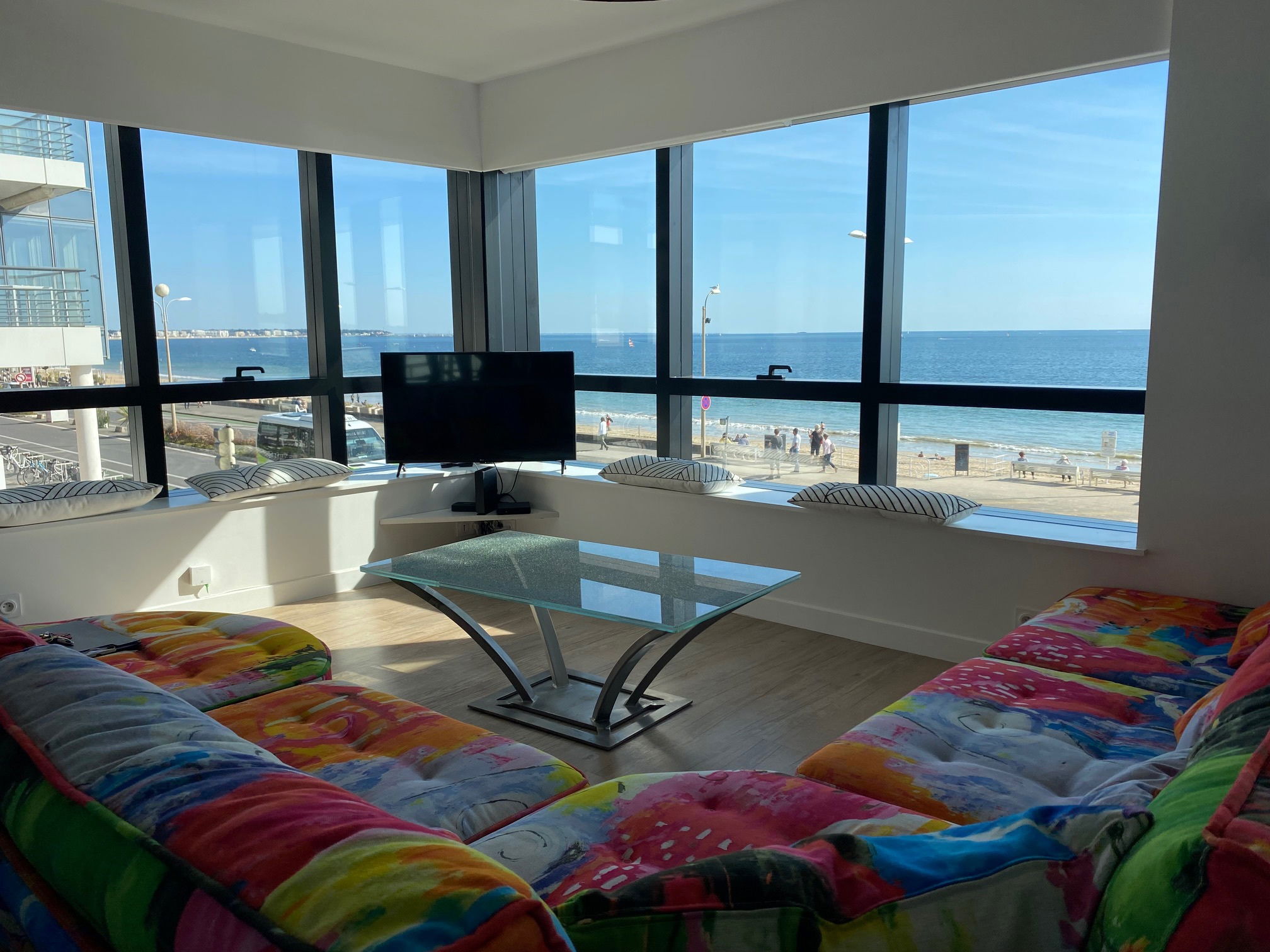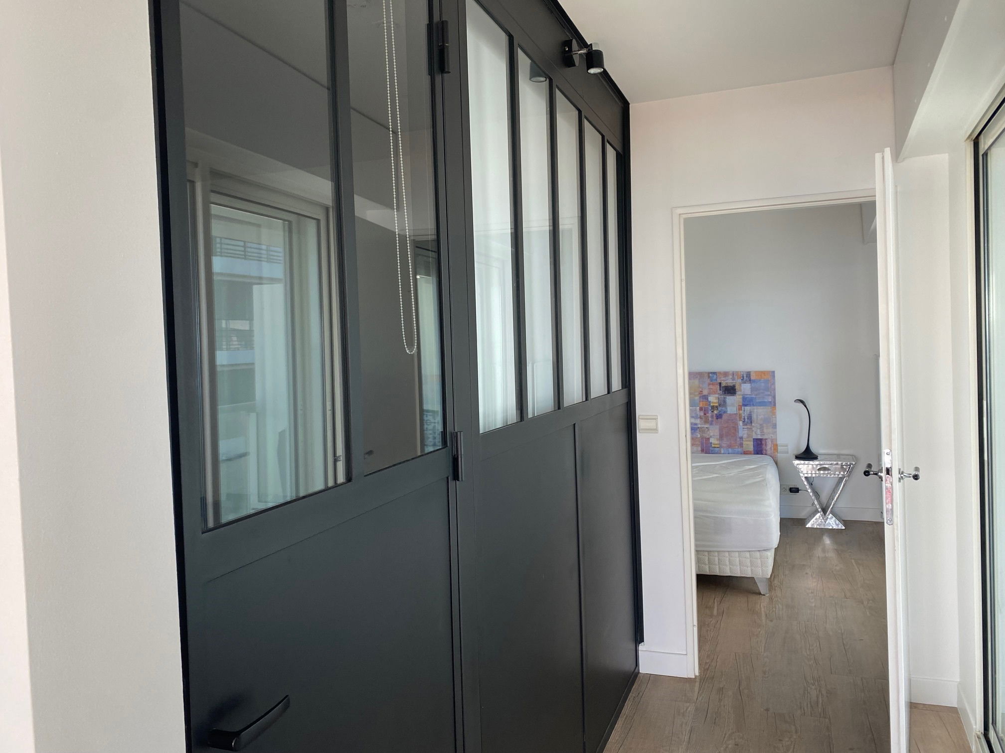 Right in the center, ideally located, this apartment will offer you everything on foot for your holidays. It includes an entrance with cupboard/wardrobe - Independent toilet - Beautiful living room with windows opening onto the sea, flat screen TV, large sofa, terrace facing the South sea and East terrace with sea view - US kitchen with fridge/freezer, dishwasher , induction hob, extractor, oven, microwave) - Bedroom n°1 with sofa bed 140/190, flat screen TV + cot, cupboard/wardrobe and adjoining shower room - Bedroom n°2 open onto the terrace East with 160/200 bed, flat screen TV, cupboard/wardrobe and adjoining shower room with WC and washer-dryer. Parking in the basement ("normal" car) - Internet wifi