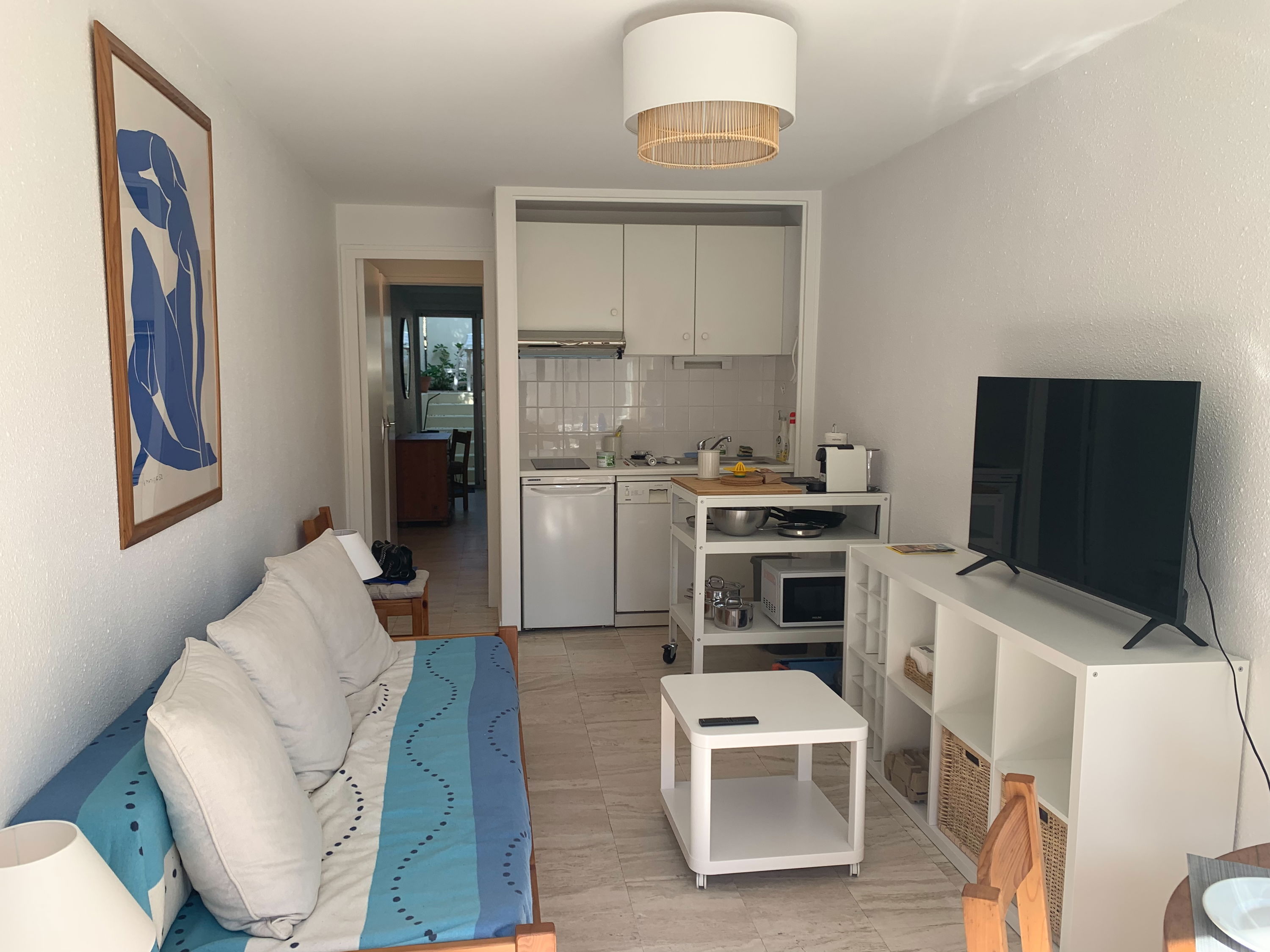 Come and stay in this apartment located on the ground floor of a quiet character villa, close to the beach and the Grands Hôtels. You will discover: - a terrace - a lounge area (TV + WIFI) and dining room - an open equipped kitchen (Nespresso, Microwave - Hood - Fridge/freezer - Induction hob - Dishwasher) overlooking the living room - Bathroom with WC - Bedroom with 2 beds 80/190 or double bed 160/190 (cupboard + washing machine) with access to a garden (table and outdoor chairs) - No private parking