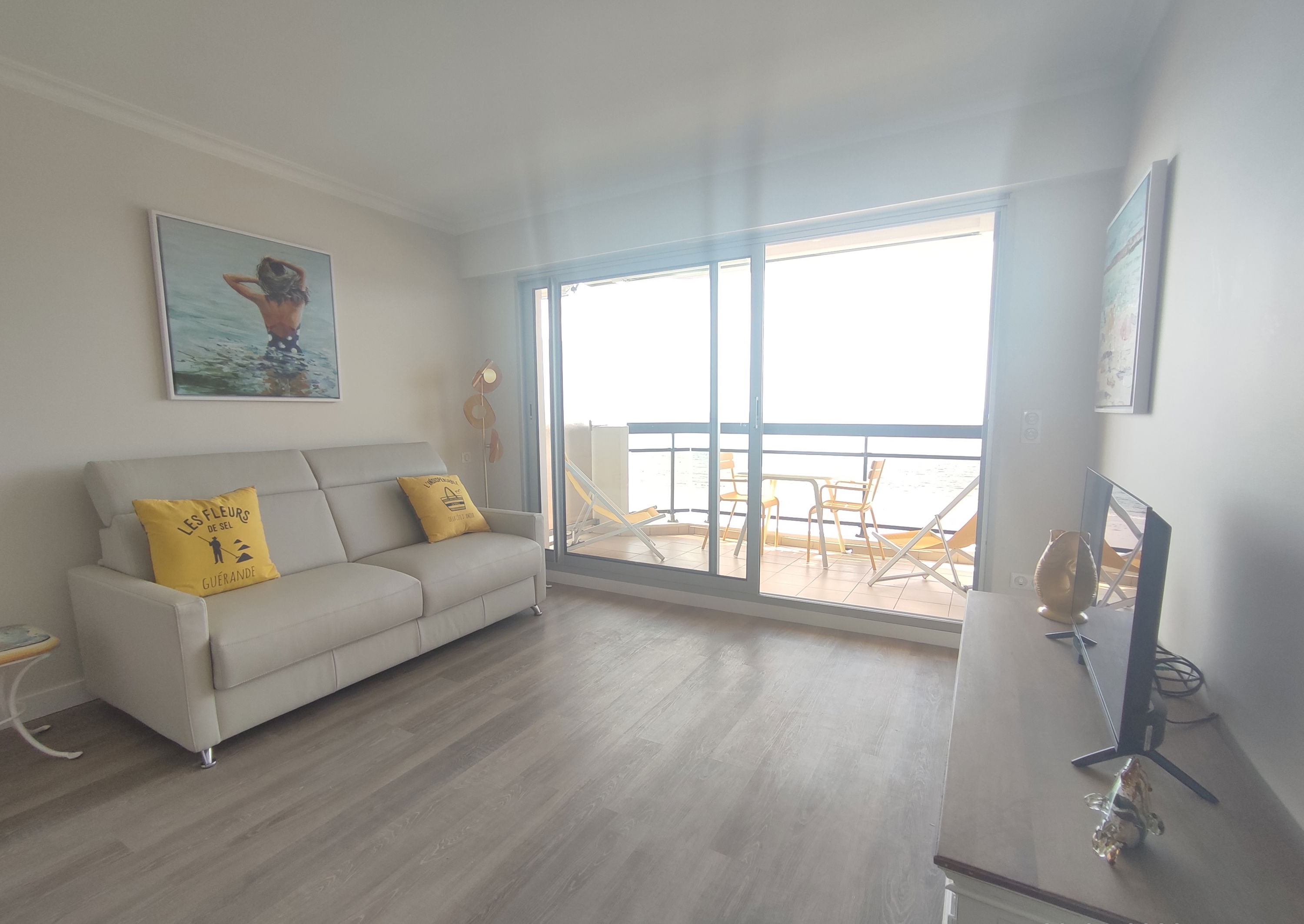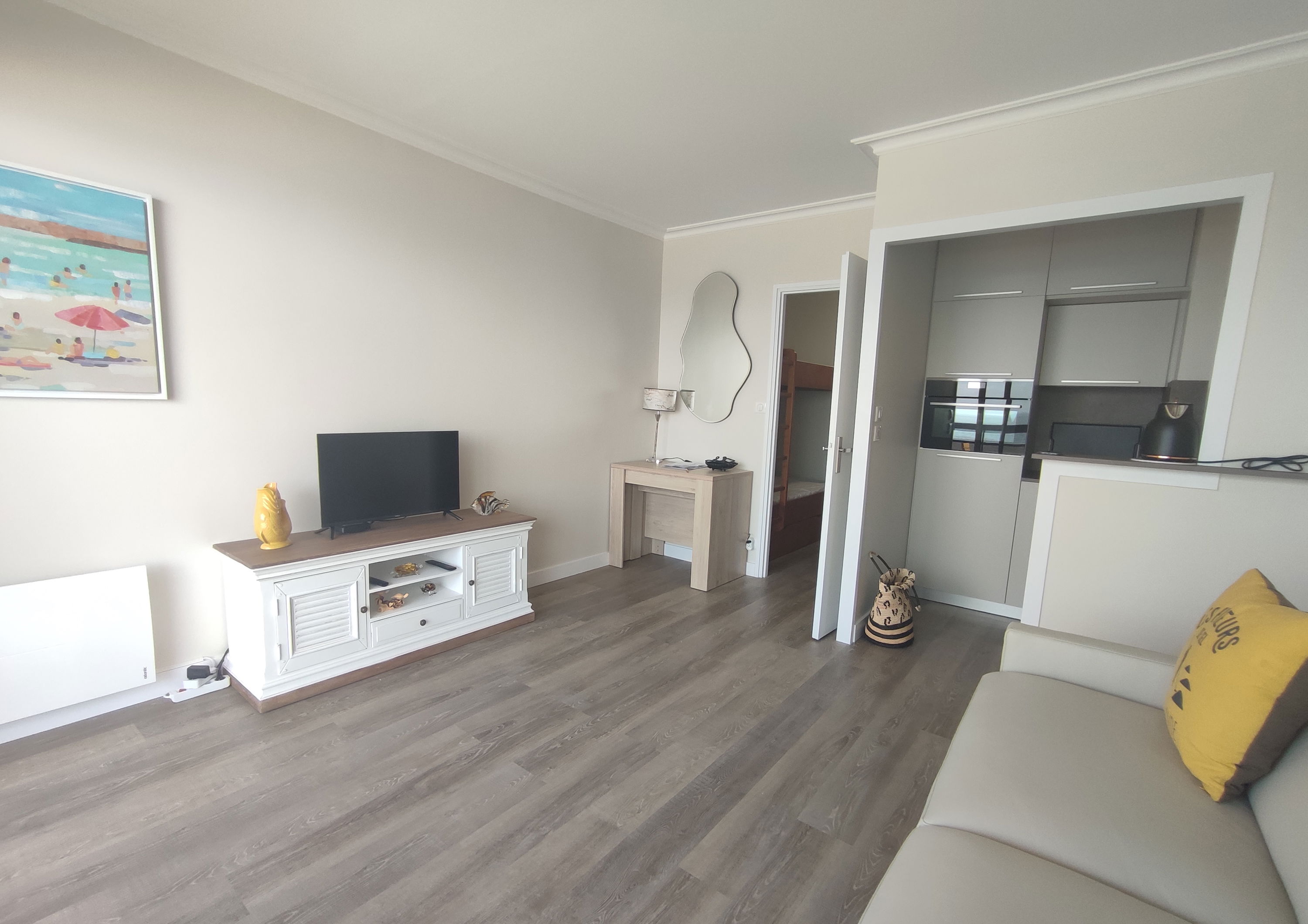 Pleasant refurbished studio on the 4th floor of a luxury residence with lift. This comfortably equipped accommodation will offer you an ideal base for your holidays by the sea. 400m from Avenue de Gaulle and facing the beach, it offers you an Entrance with cabin area (bunk beds 70/190) + cupboard - Living room (sofa convertible into 160/190 + flat screen TV) with US A/E kitchen (Nespresso - Fruit press - Dishwasher - Washing machine-dryer - 2 vitro hobs - Hood - Multifunction microwave oven - Refrigerator with Freezer - Kettle and Toaster) - WC ind. - Bathroom with large ultra-flat shower tray + Furniture with basin + Towel dryer. Private parking space in the basement (ONLY AVAILABLE FROM APRIL TO SEPTEMBER) In winter parking on the street - WIFI CONNECTION