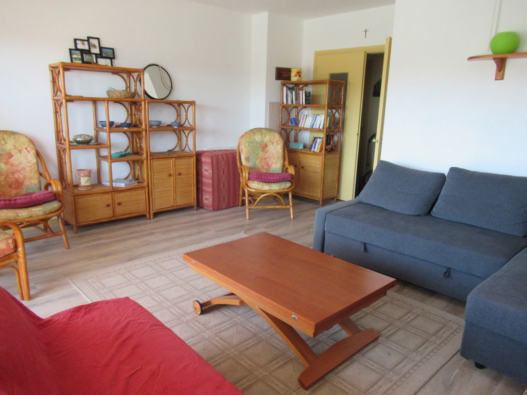 It consists of an entrance opening onto a large living room (convertible sofa and a standard sofa, TV, 2 armchairs). A terrace facing the port facing west with an awning, a dining table and a deckchair.