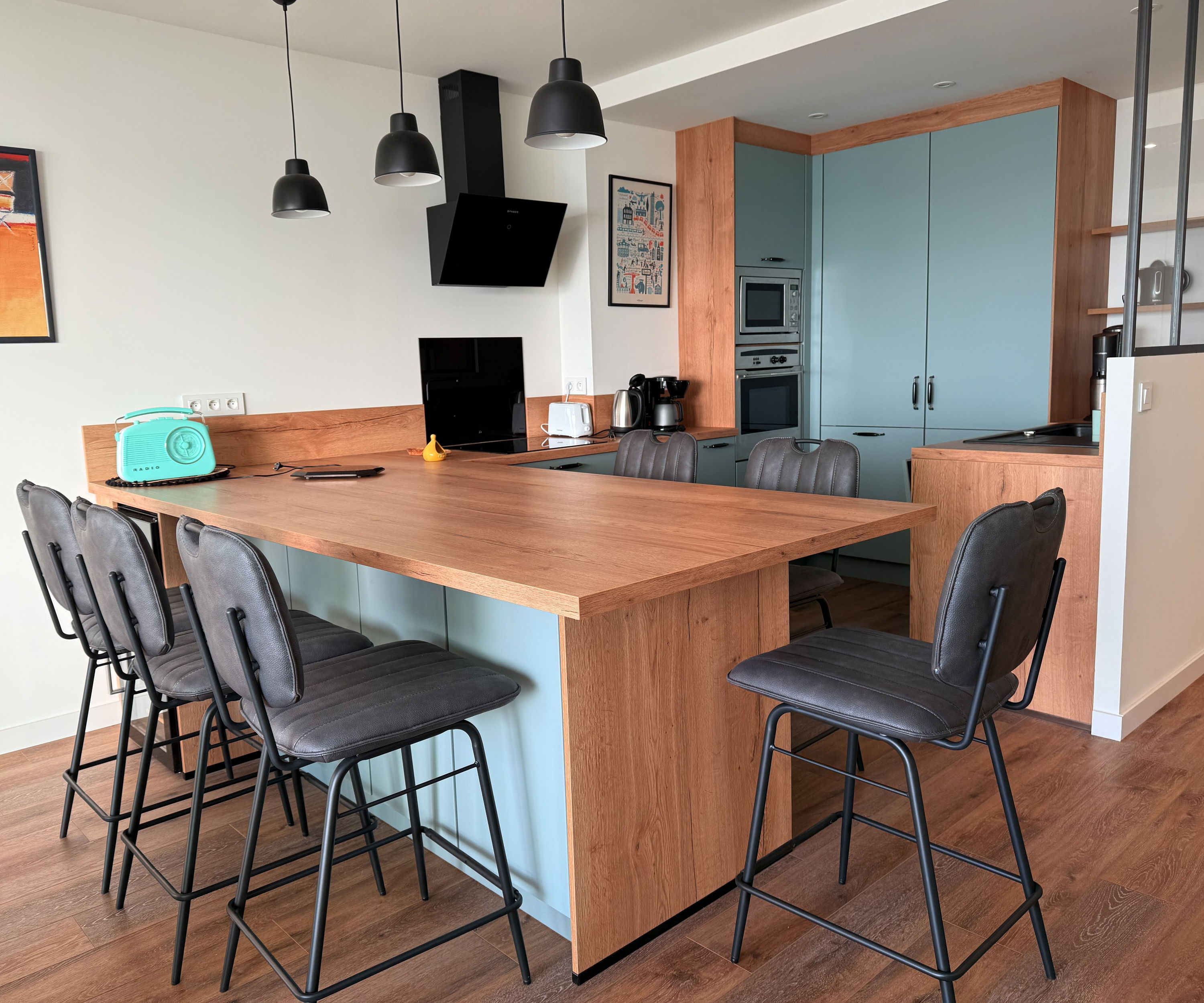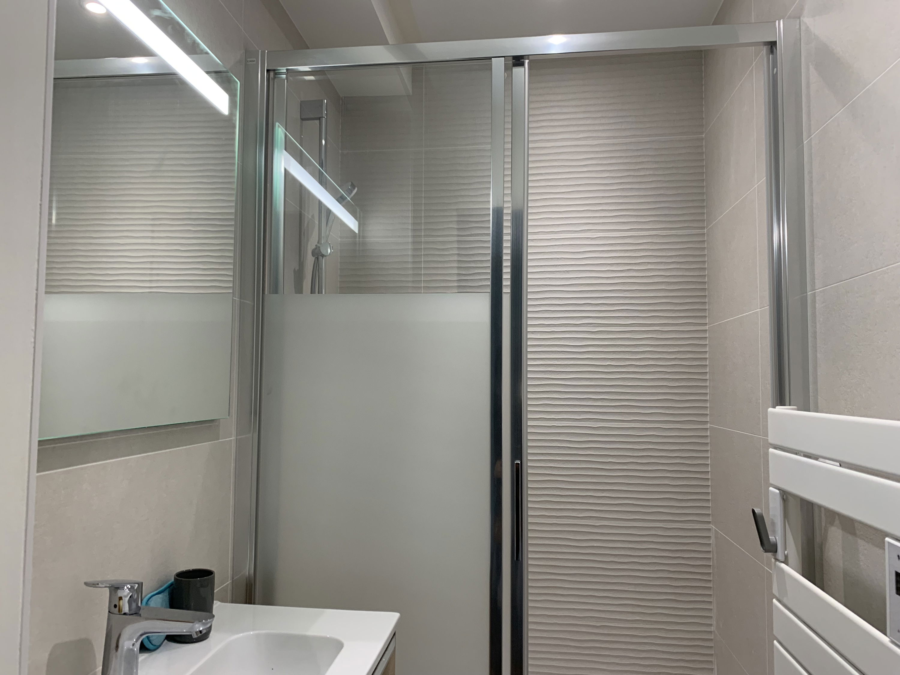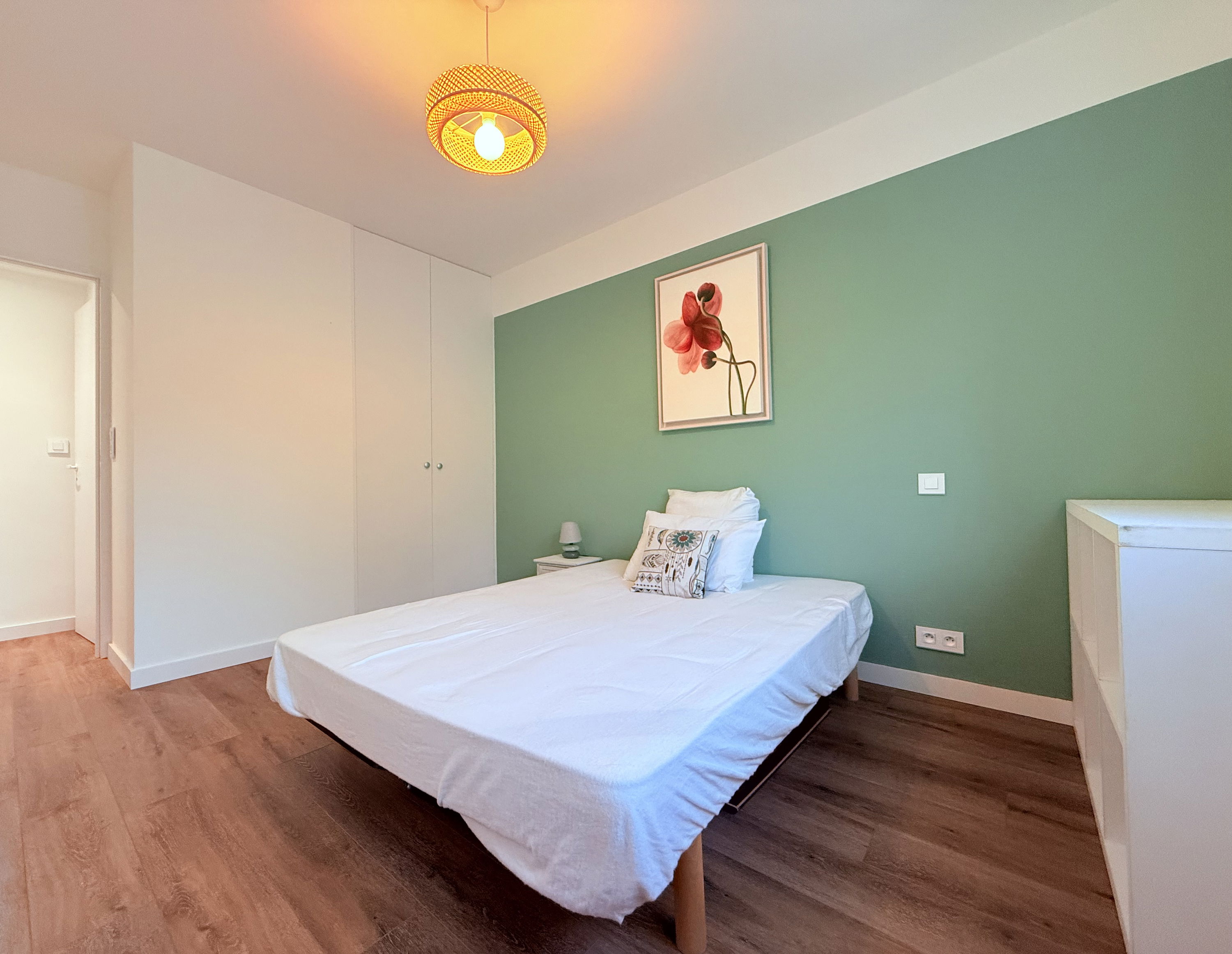 Entrance with cupboard - Equipped kitchen (ceramic hob, hood, filter coffee maker, kettle, toaster, oven, microwave, dishwasher) and open to the living room (180/200 sofa bed + TV + WIFI) - Bathroom with shower and washing machine - Separate WC - Bedroom 1 with 140/190 bed + cupboard/wardrobe - Master bedroom 2 with 160/190 bed + adjoining bathroom with access to a balcony (shower + dryer -towel) + desk + dressing room.