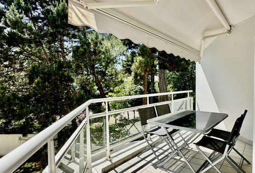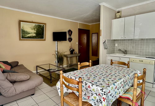 Entrance with cupboard/wardrobe onto Living room with television opening onto terrace (with outdoor furniture + Chilean units + Awning) with open kitchen A/E (dishwasher, refrigerator with freezer, microwave, 4-burner ceramic hob - Extractor hood - Oven - Filter coffee maker) - Bedroom with 140/190 bed and cupboard/wardrobe on terrace - Bathroom - WC. Private parking in the basement.