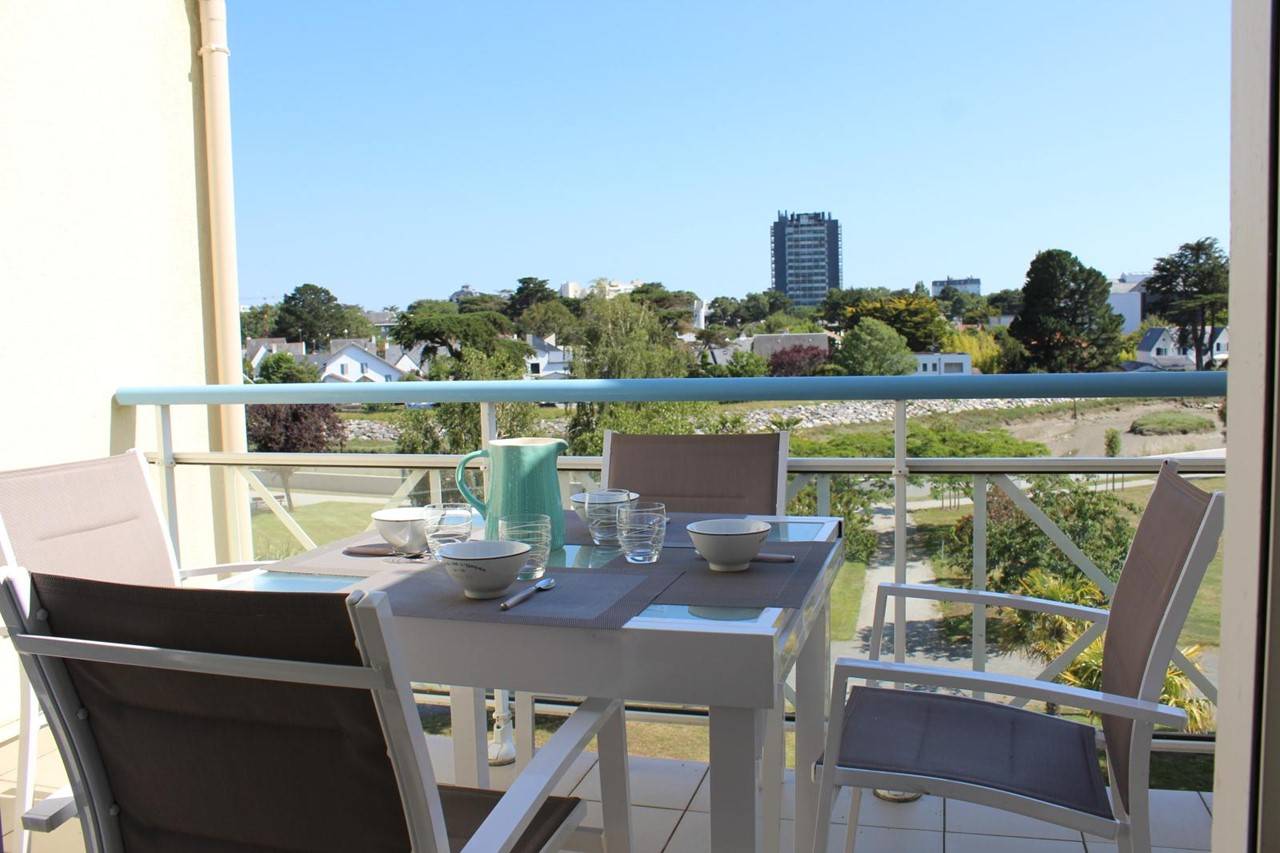 One kilometer from the fine sandy beach, close to the Tennis country club of La Baule and the equestrian center. This holiday apartment with swimming pool is ideal for a holiday for two. This rental in La Baule consists of a living room with a dining area, a lounge with a television, a sofa bed for 2 people, a fitted and equipped kitchen area, a shower room, a separate toilet, a mezzanine bedroom with a double bed. You also benefit from a terrace with a view of the estuary. Private parking space.