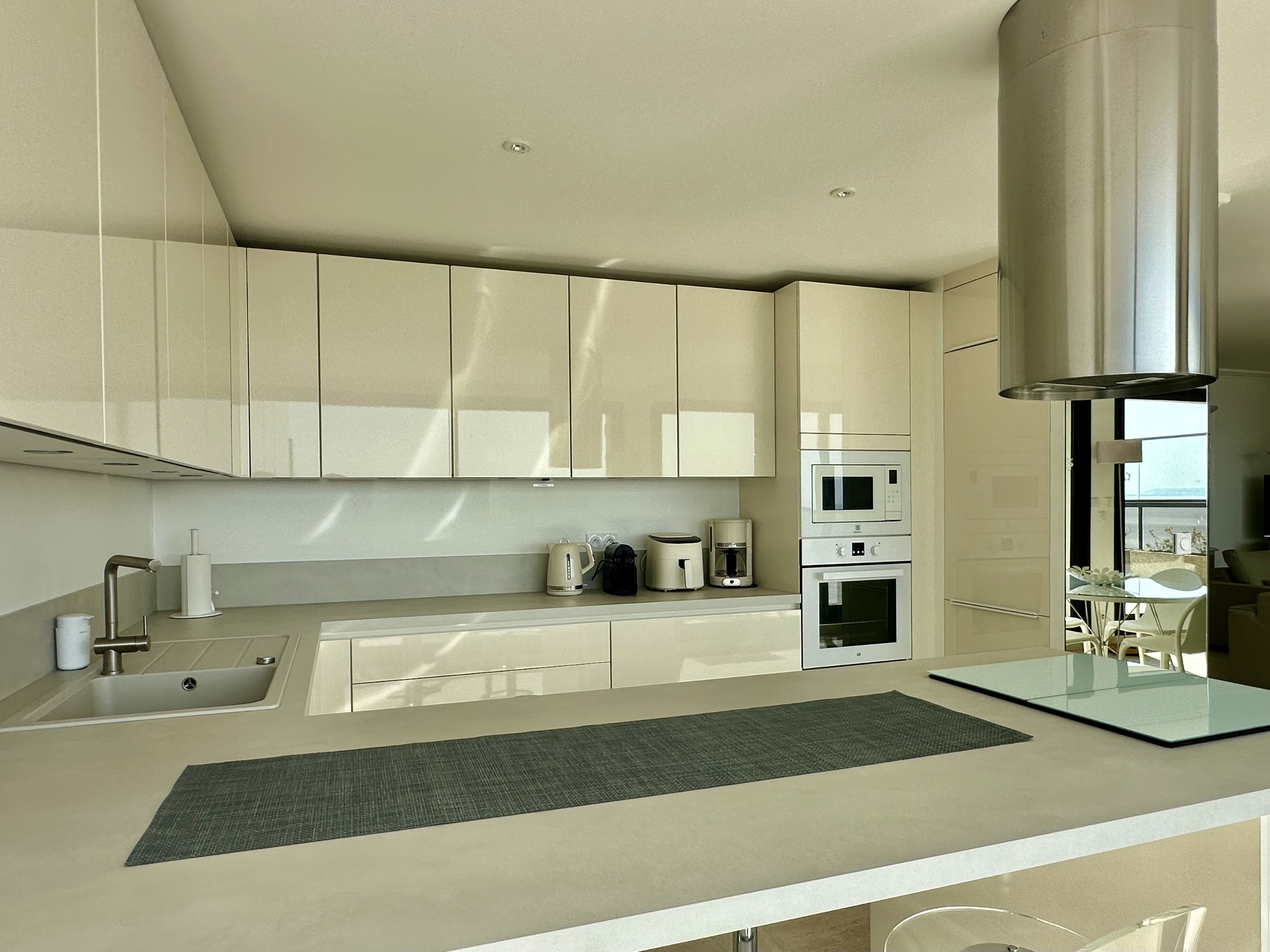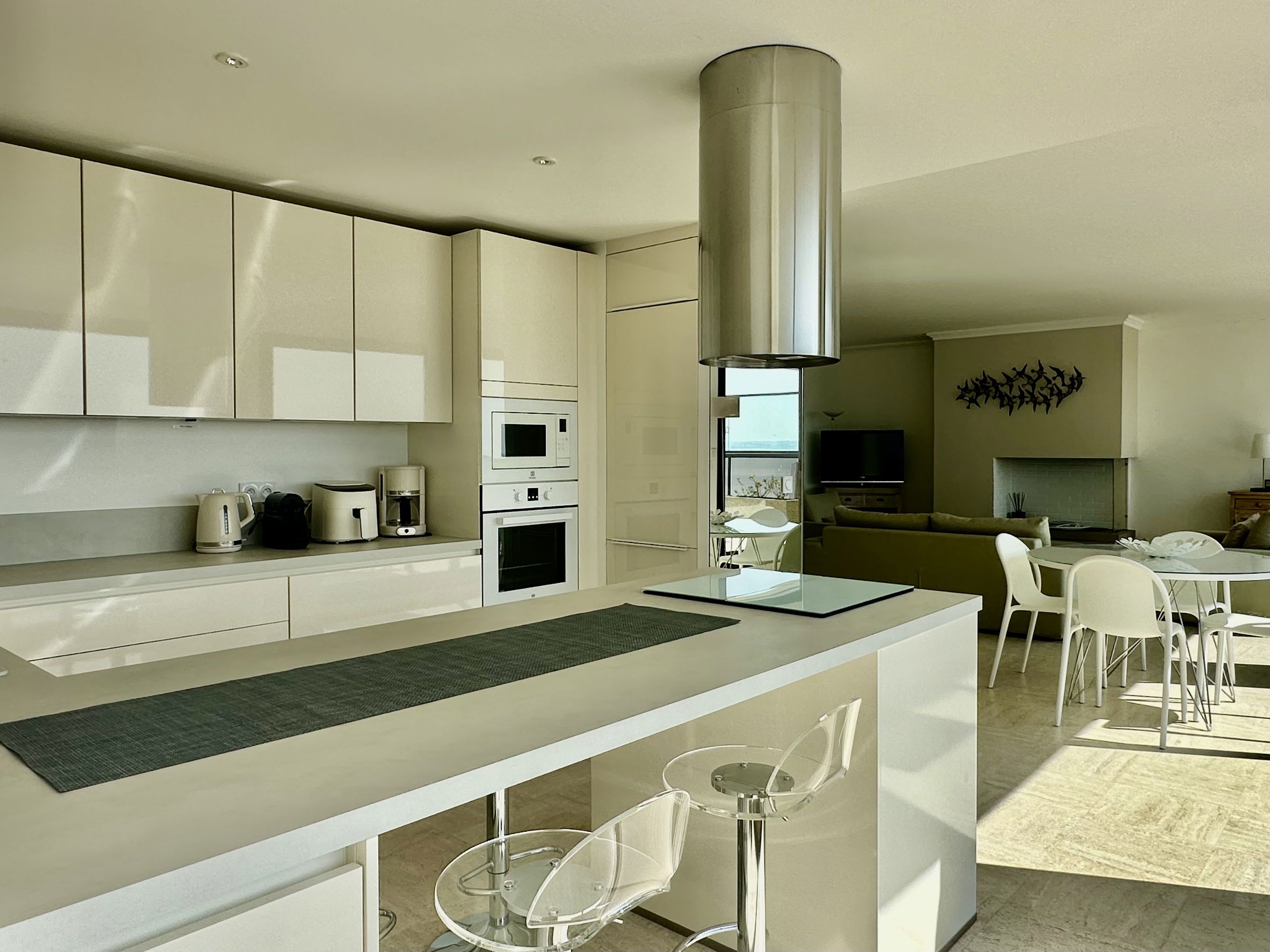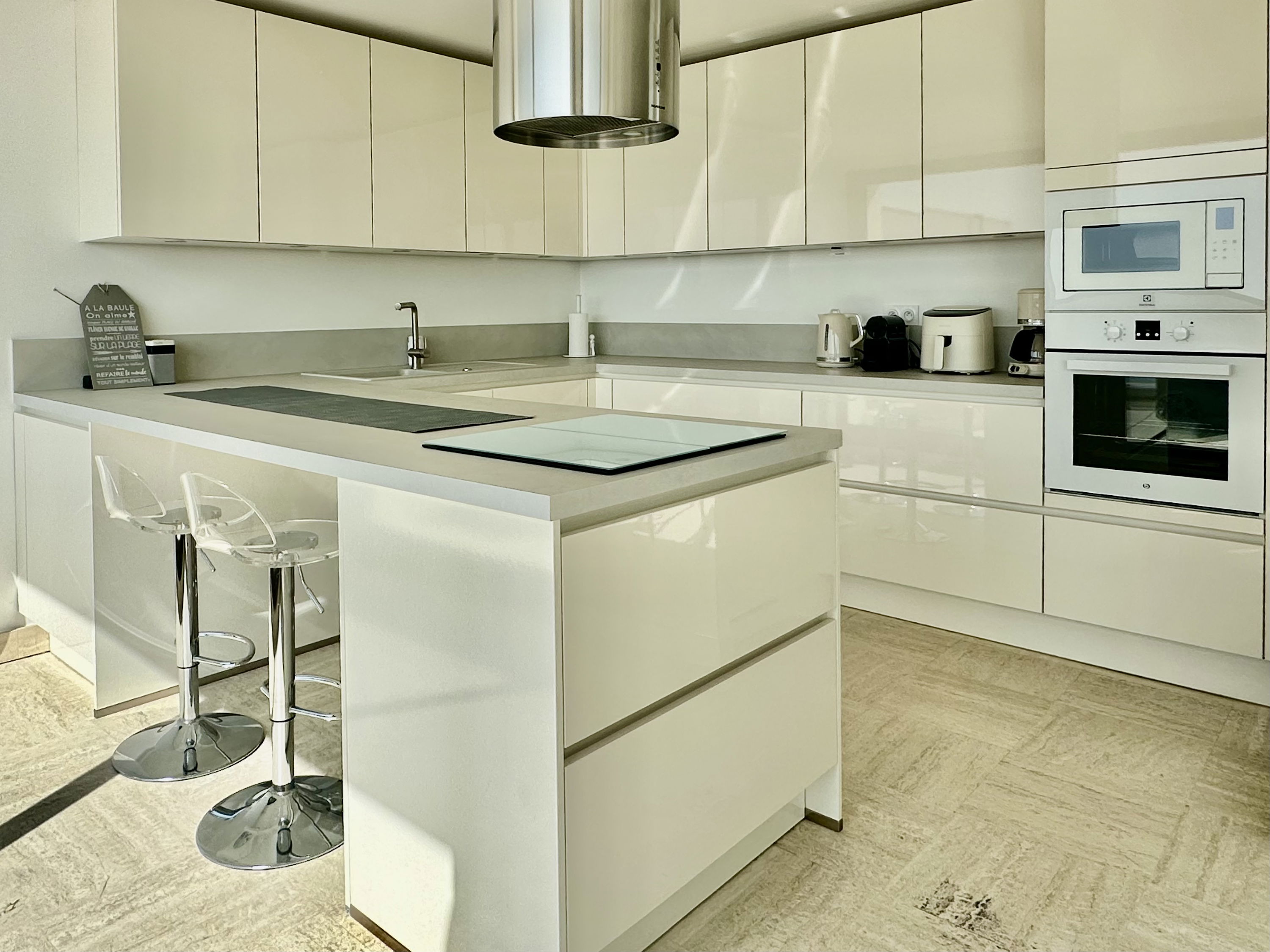 The open kitchen is fully equipped with modern equipment: oven, dishwasher, induction hob, extractor hood, microwave, fridge-freezer, Nespresso coffee machine, airfryer.