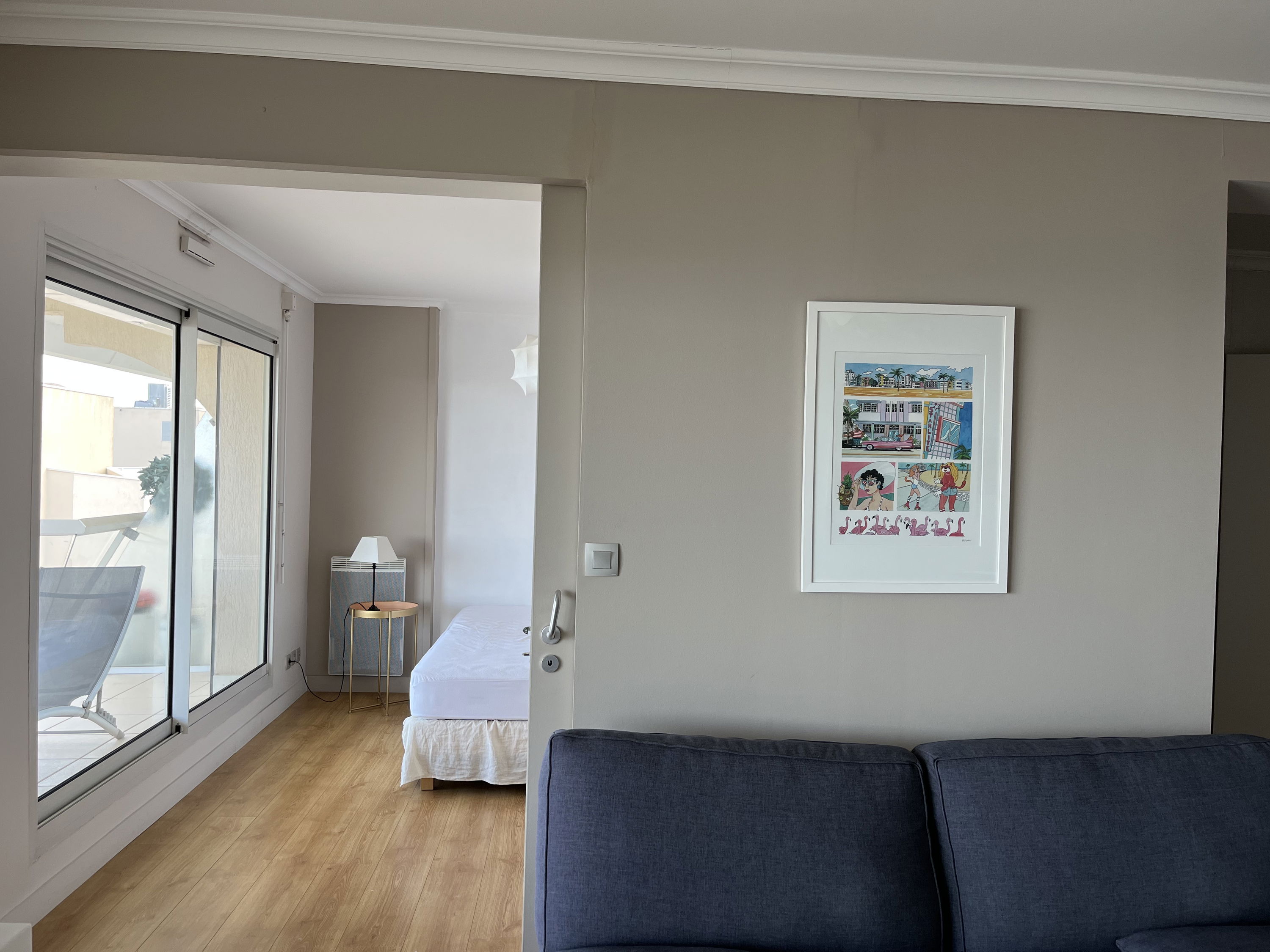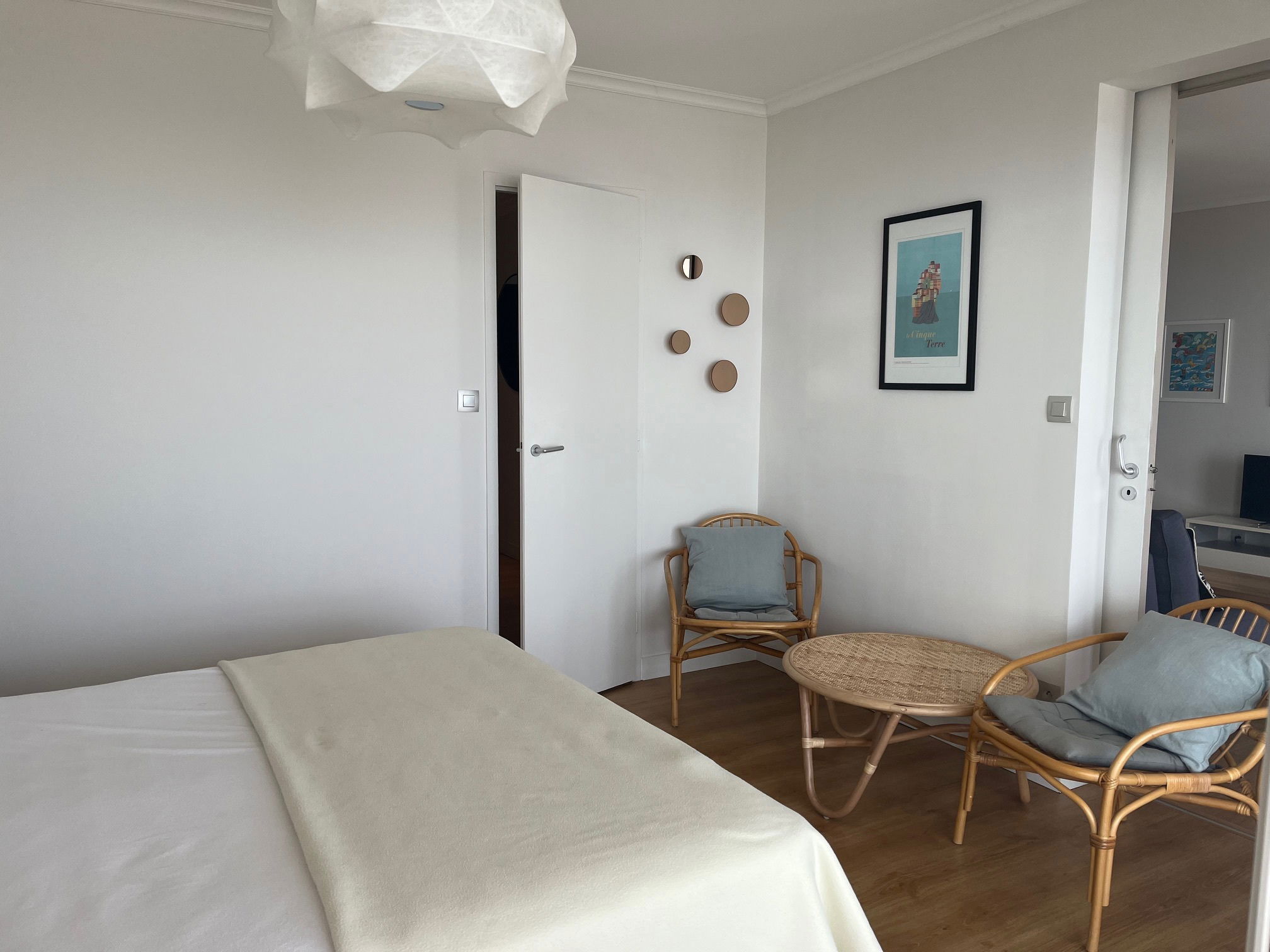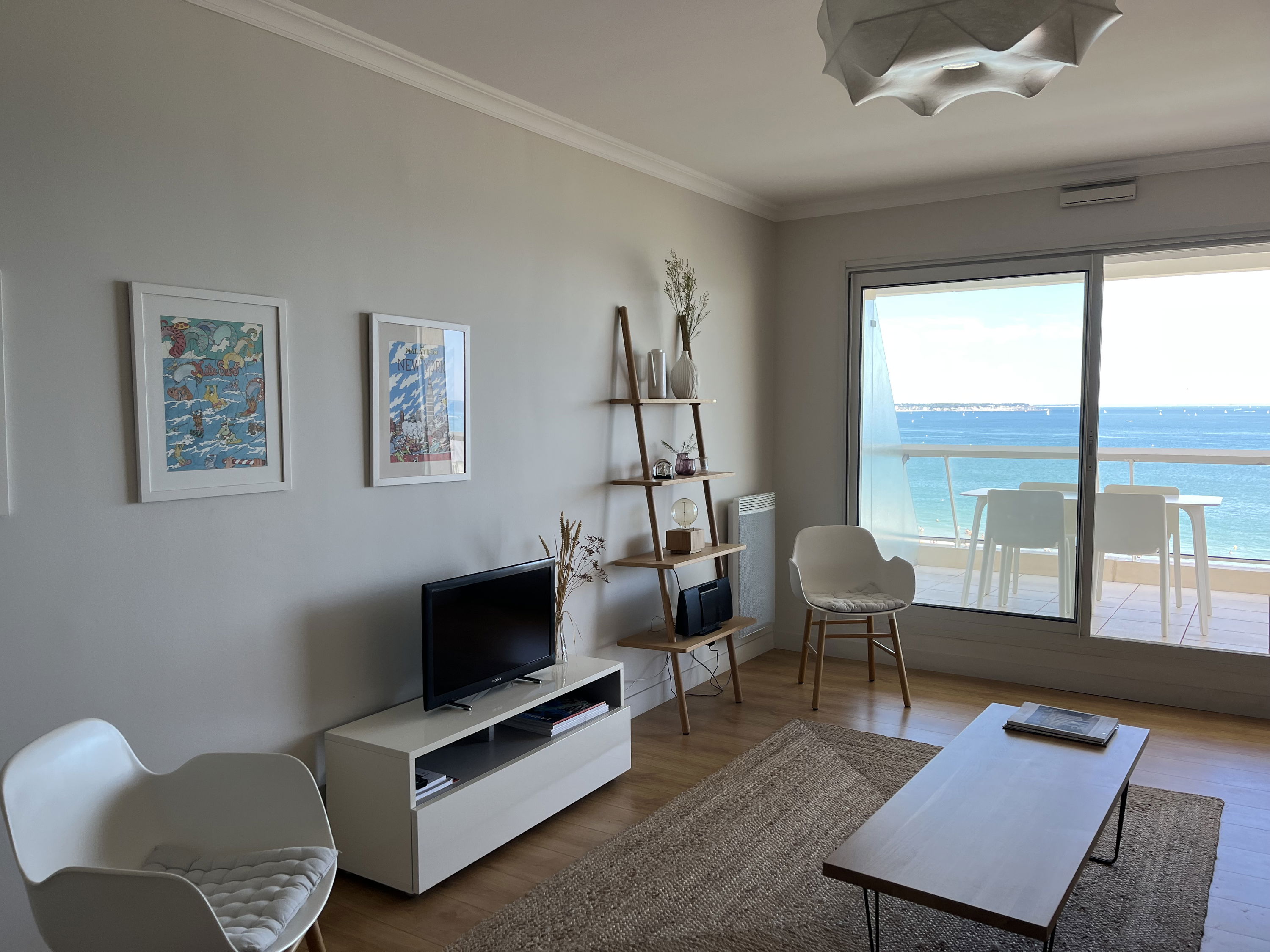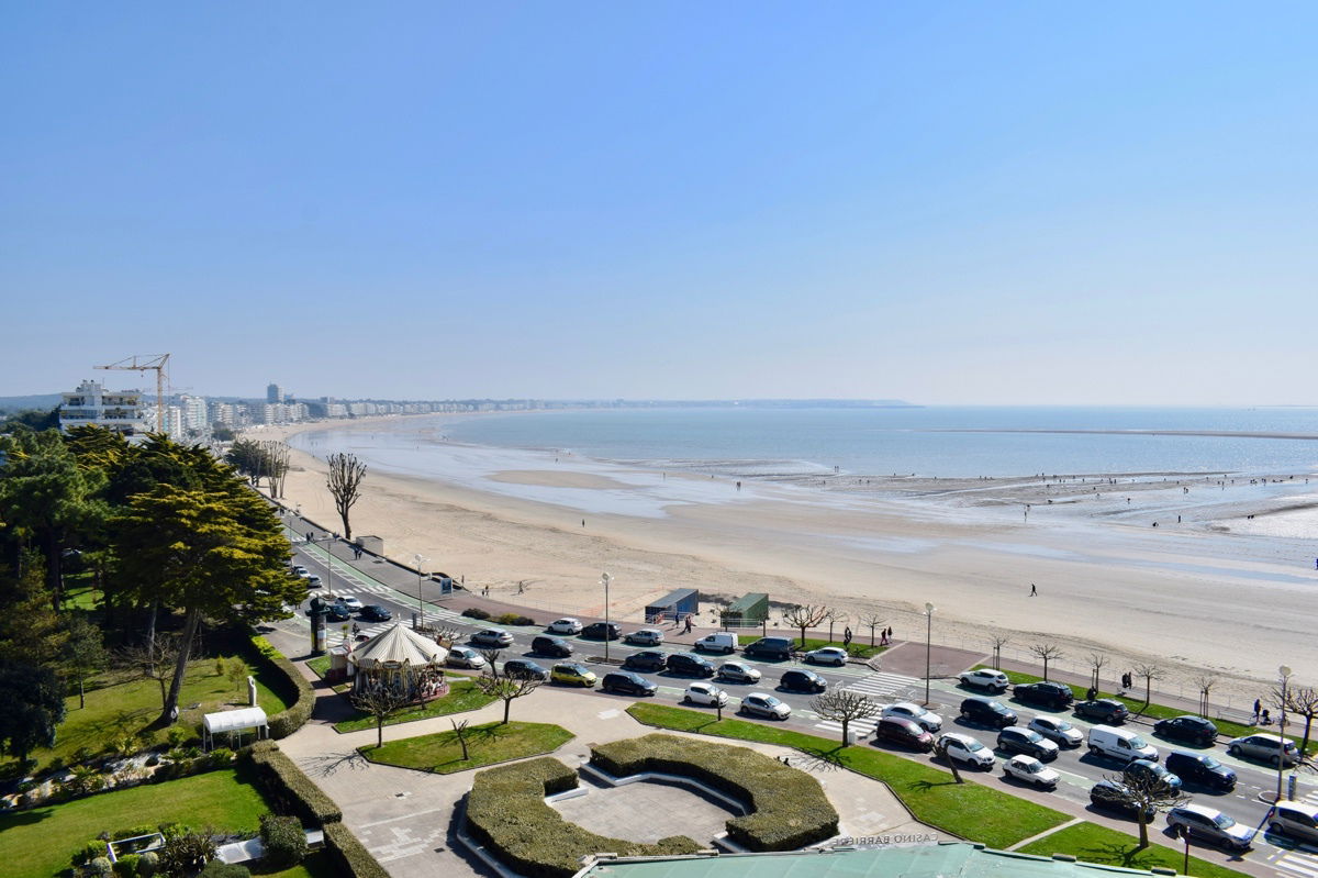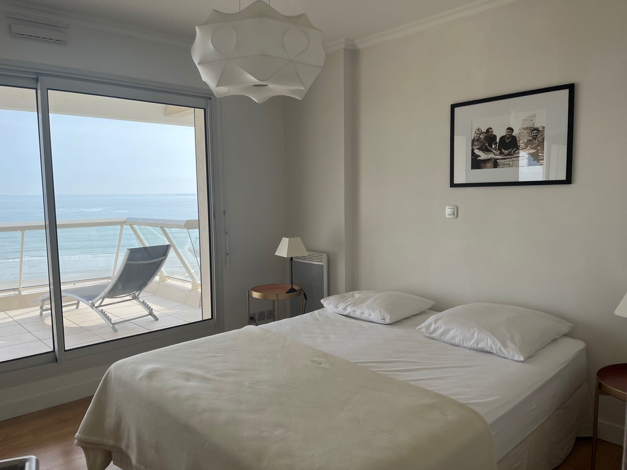 In the area of the Casino, the Thalasso and Great Hotels - Apartment on the 7th floor of a luxury residence in perfect condition - tasteful decoration and comprising : Entrance - Living room opening onto a terrace south facing the sea (TV-flat screen tv - sofa bed 140/190) - american Kitchen / fully equipped (Fridge and Freezer - Plates 4 lights with halogen - Microwave - dishwasher - Washing machine - Dryer) - a Room overlooking terrace facing the sea (1 bed 2 pers. 160/200) - bathroom + shower - independent WC - Garage. PETS ARE NOT ALLOWED. Registration number : 44055000227A6