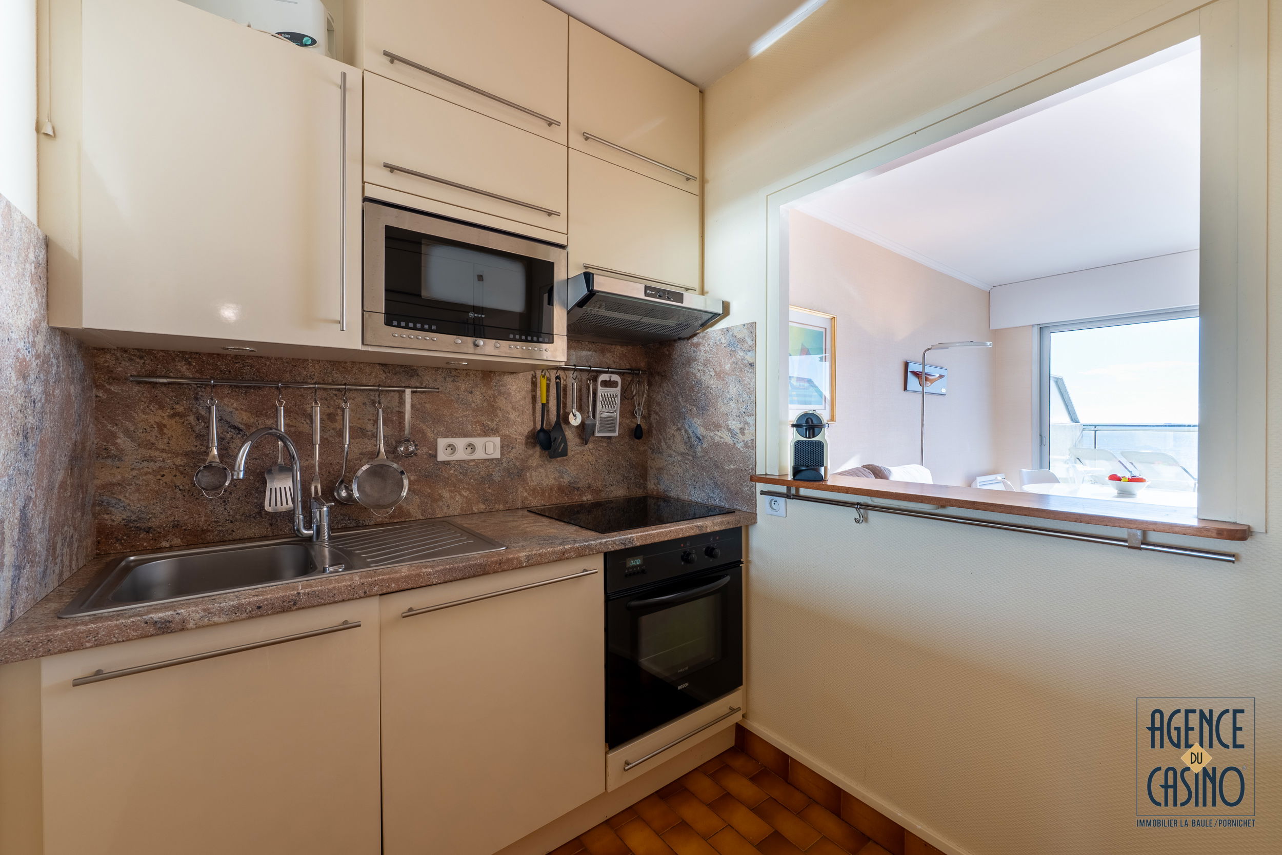 Beach Benoit in front of the beach Club Sandpipers - Type 3 - Comprising : Entrance with two large closets - living Room open onto large terrace facing the sea (bed furniture 140/190 + flat screen TV) - Kitchen semi-open fitted and equipped kitchen (Micro-waves - Oven - Fridge/cong. - Dishwasher - Plate induction - Nespresso - Coffee machine) - WC ind. - (SDE with Italian shower + washing machine) - Bedroom n°1 with a bed of 140/190 with balcony with flat screen TV - Bedroom # 2 balcony with 2 beds 90/190 + closet. Place of outdoor parking. NON SMOKING - WIFI ACCESS