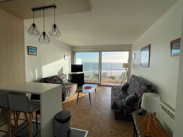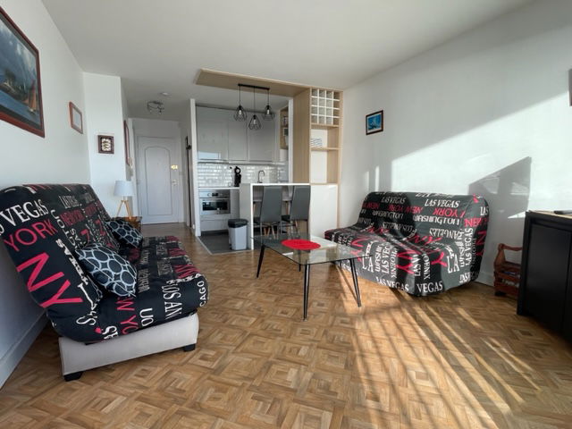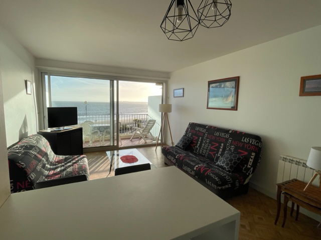 Studio located on the 2nd floor of a residence in the heart of the bay facing the sea - near the avenue Lajarrige comprising : Entrance with closet - Living room with 2 sofa beds 140/190 and a flat screen tv, open on beautiful terrace facing the sea - open Kitchen with 4-ring Gas hob, Oven, Fridge/Freezer and Microwave - Bathroom with shower and WC. Easy parking in the street.