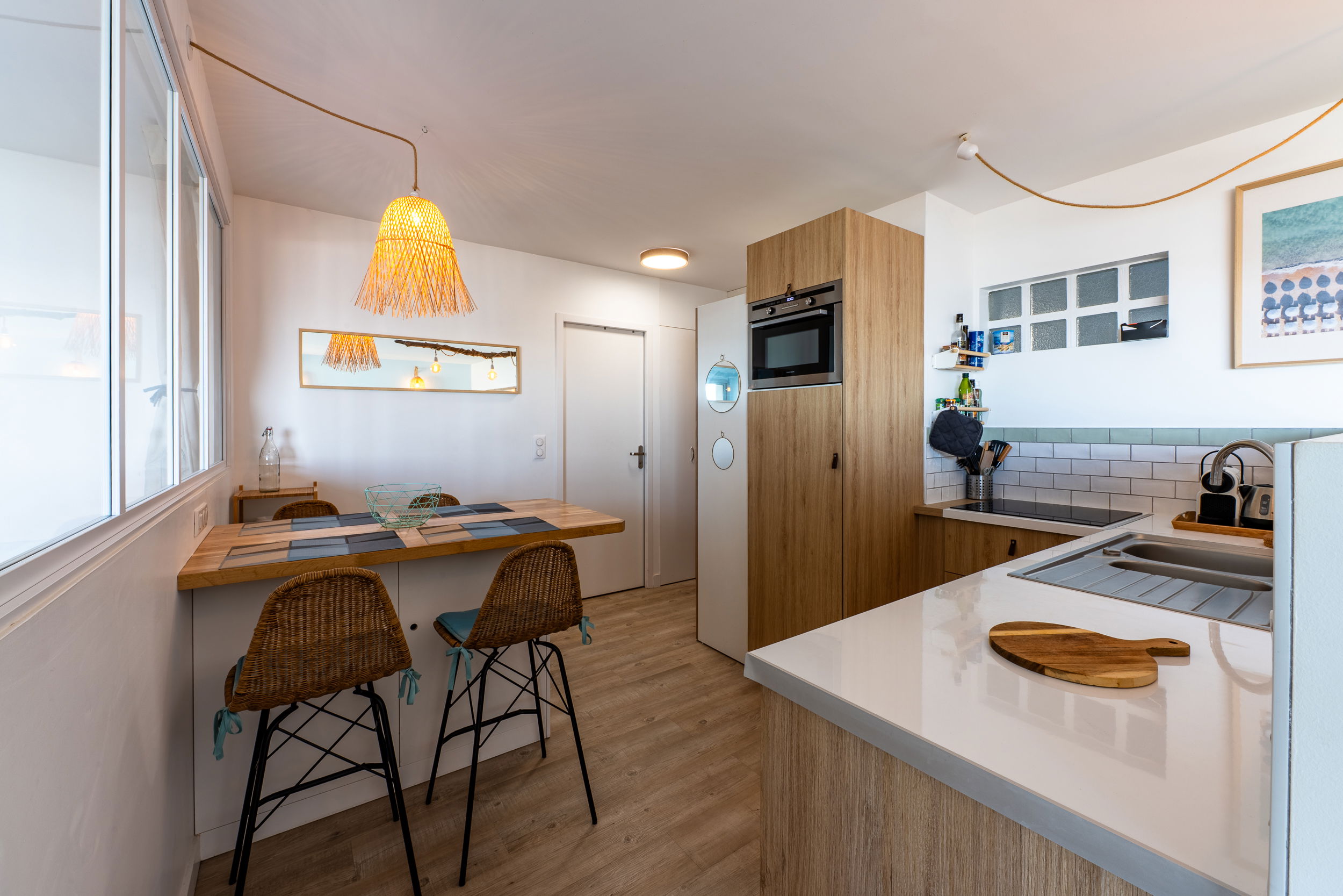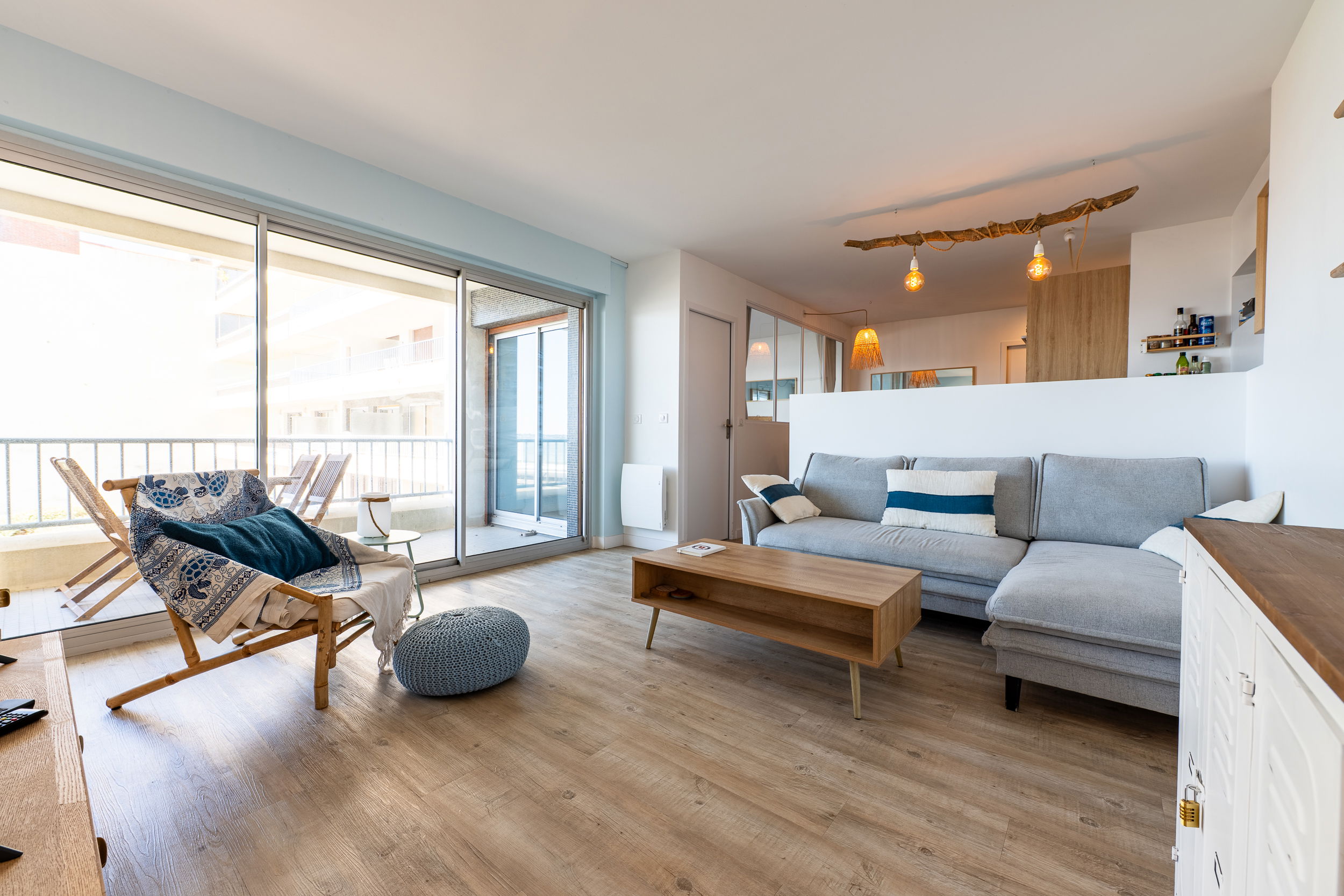 Settle into this beautiful apartment with its bohemian chic décor, located in a beachfront residence in the heart of La Baule. Enjoy its west-facing ocean view, perfect for abundant natural light and a view of the Pointe de Penchâteau.