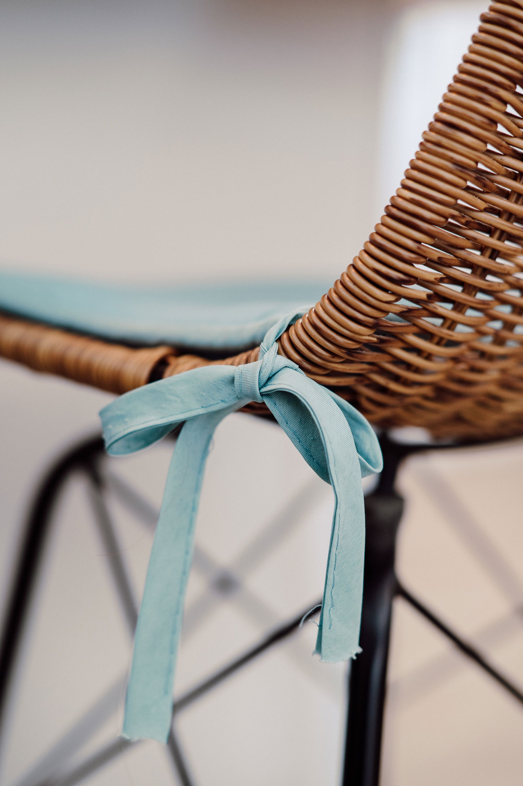 A convivial dining area with a high table and rattan chairs.