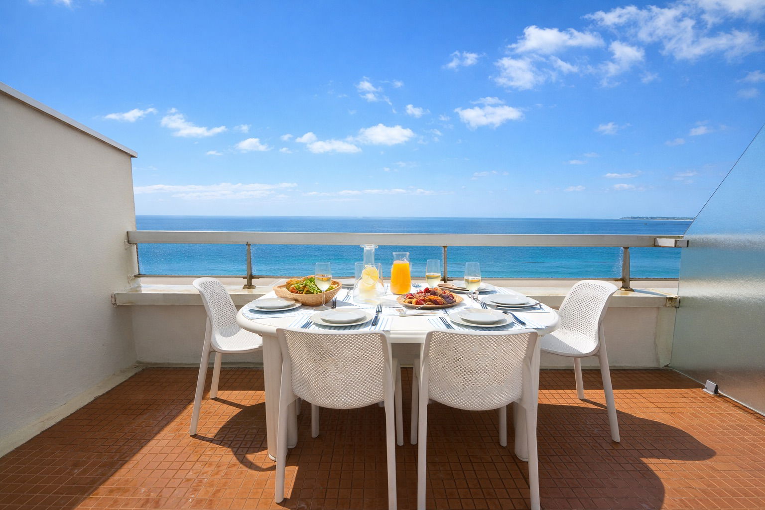 Located on the 4th floor with elevator access in a luxury residence, the apartment offers a pleasant terrace facing the sea, furnished with outdoor furniture and an awning. It's the perfect place to enjoy breakfast in the sun, share a meal overlooking the bay, or admire the magnificent sunsets over the ocean.