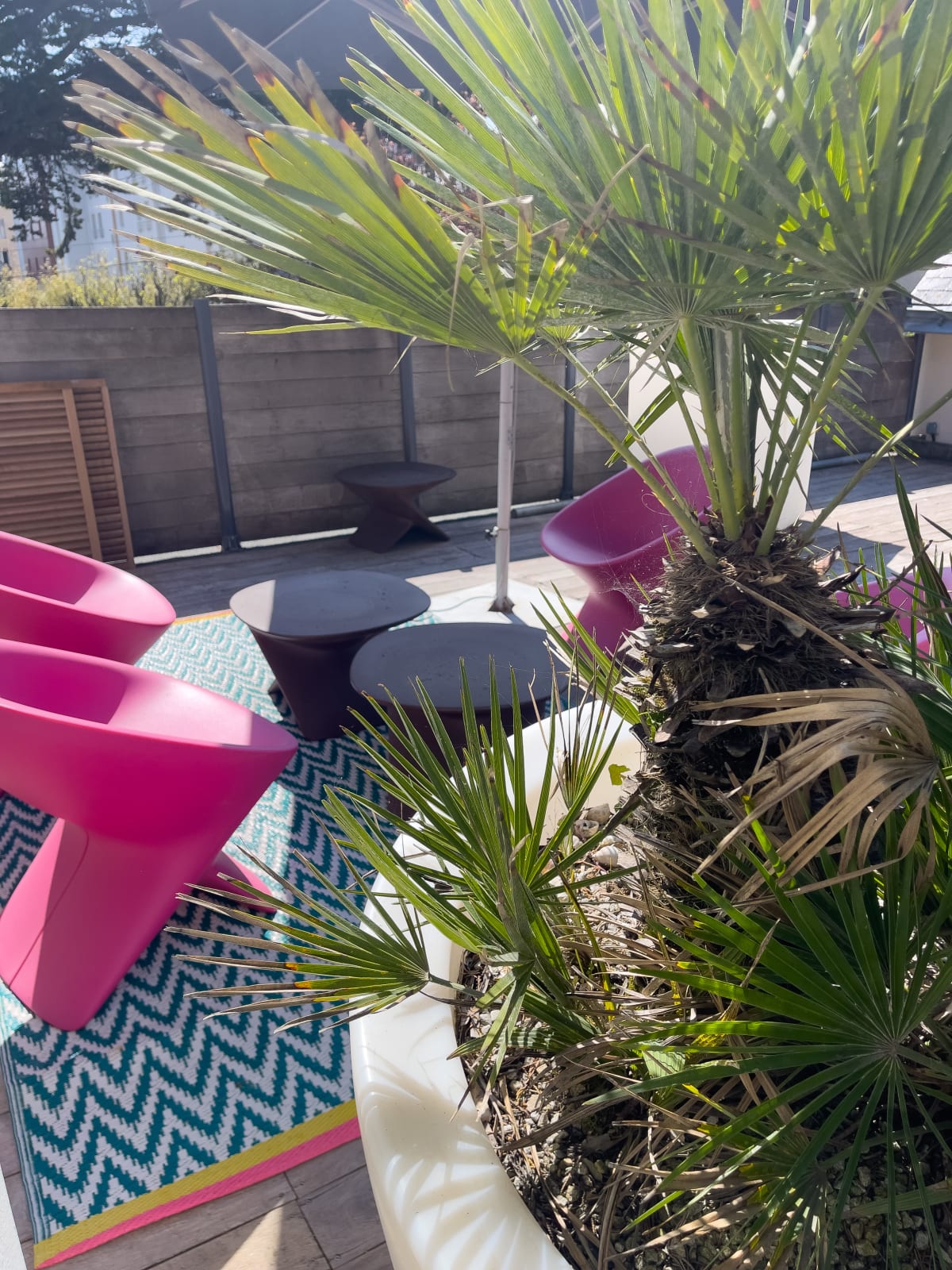 Its asset, the view across the sea and the pines, the common terrace where it will be good to settle down for lunch or to meet with friends or family.