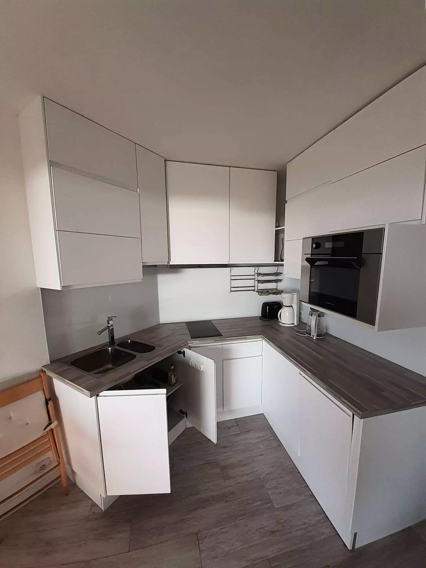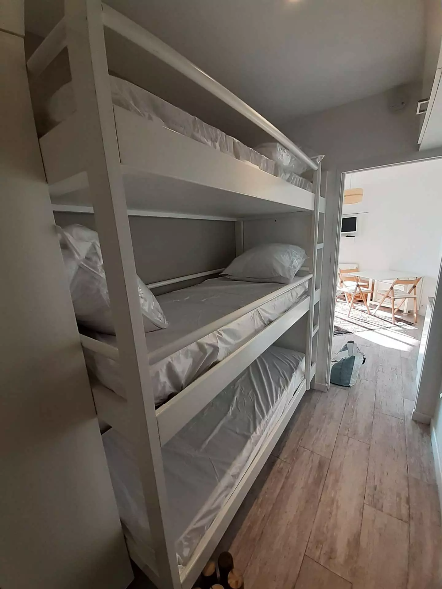 Pleasant apartment with a side sea view on the floor with elevator offers an entrance with closet and a cabin area with bunk beds (3), a living room (sofa bed) with a kitchenette and opening onto the terrace.