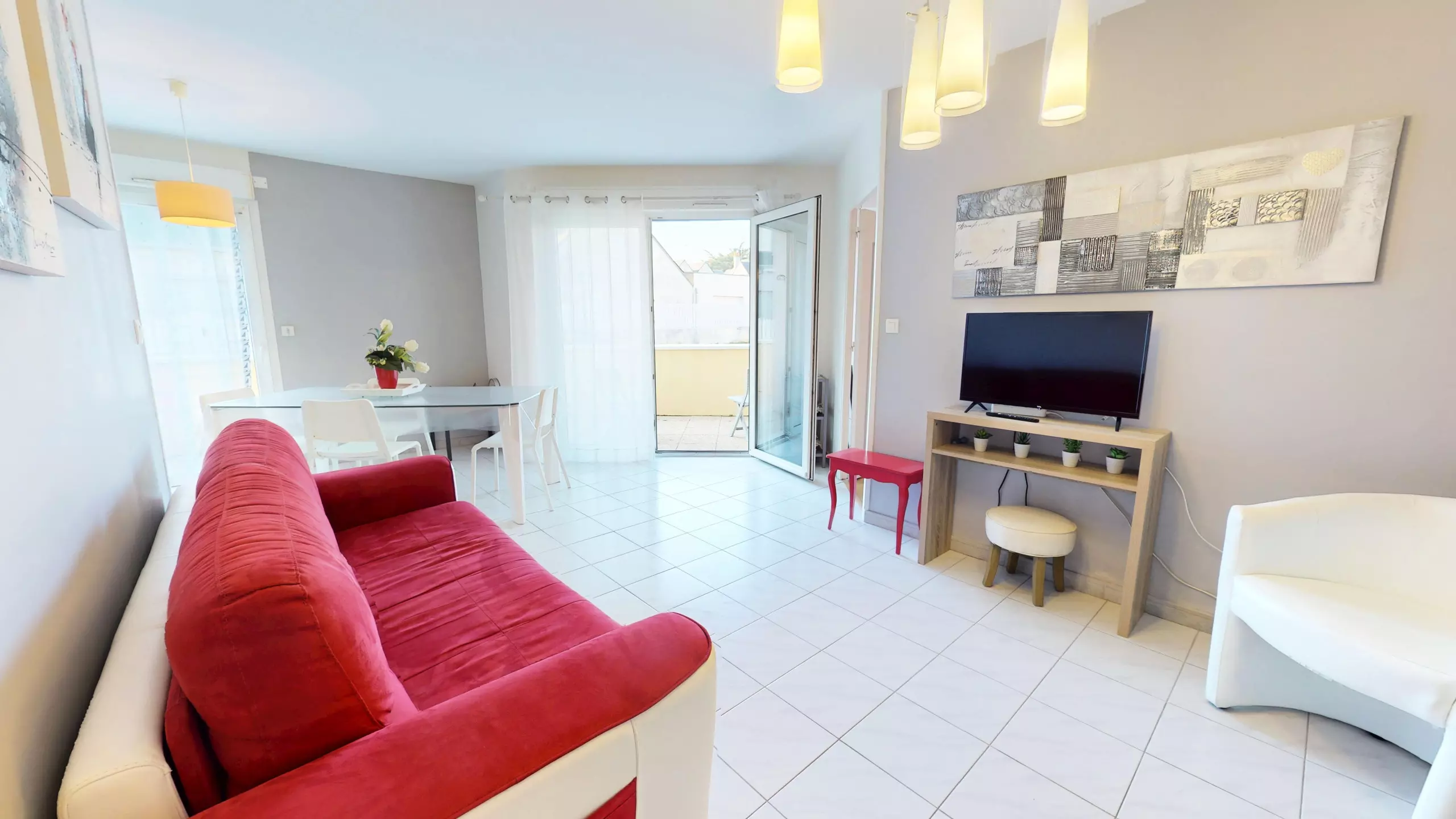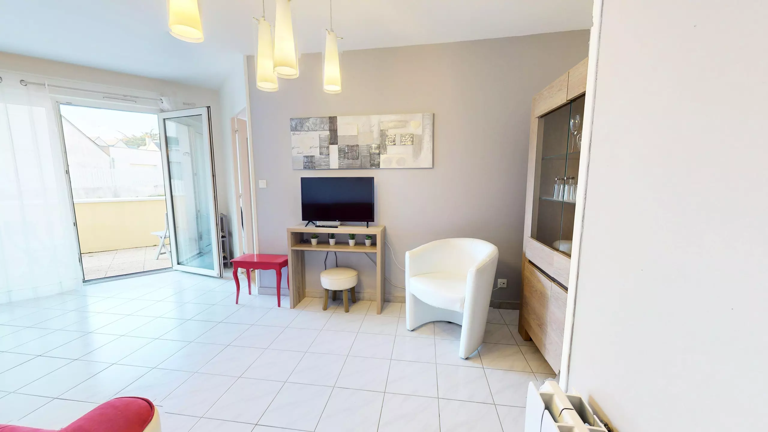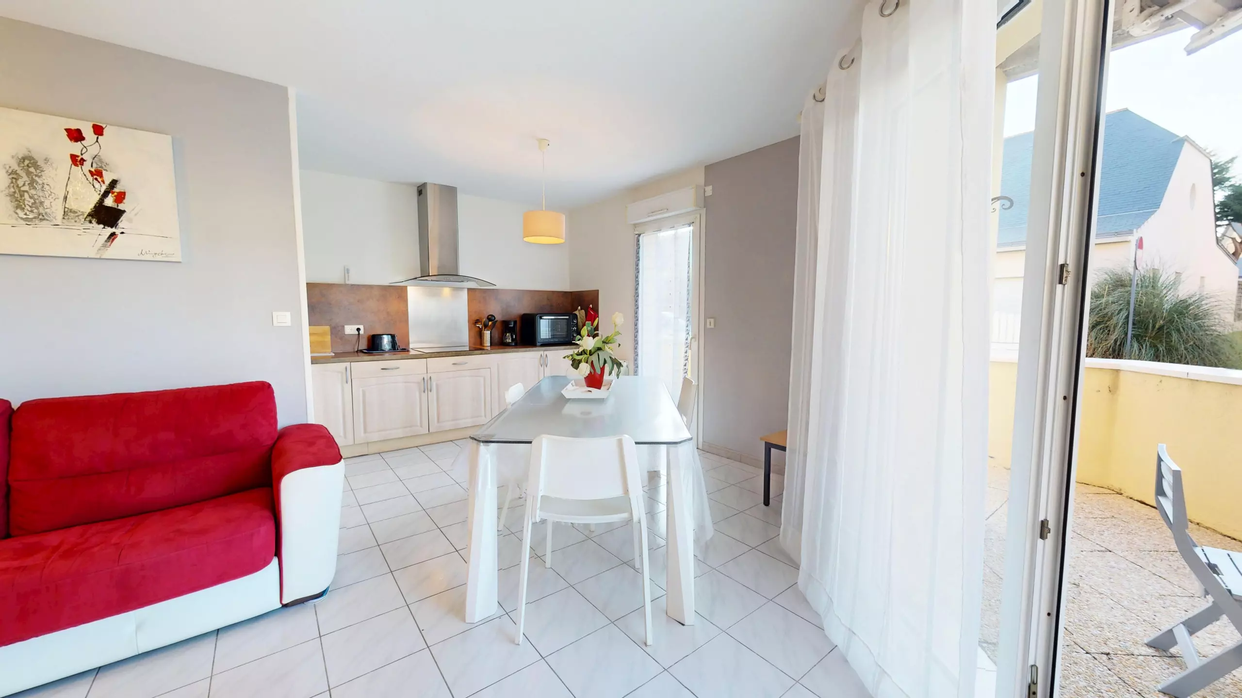 Located on the ground floor, the apartment also has a small, cozy terrace furnished with garden furniture, perfect for enjoying the outdoors, having breakfast in the sun or savoring the end of the day in peace and quiet.