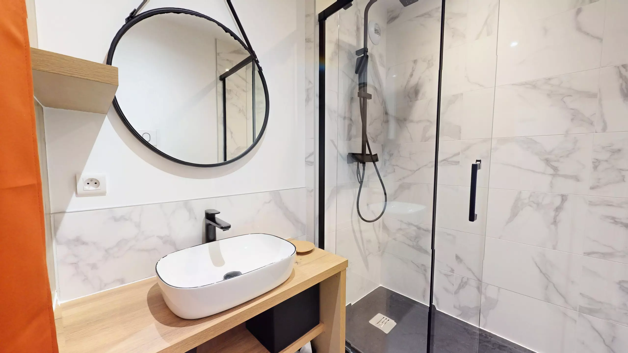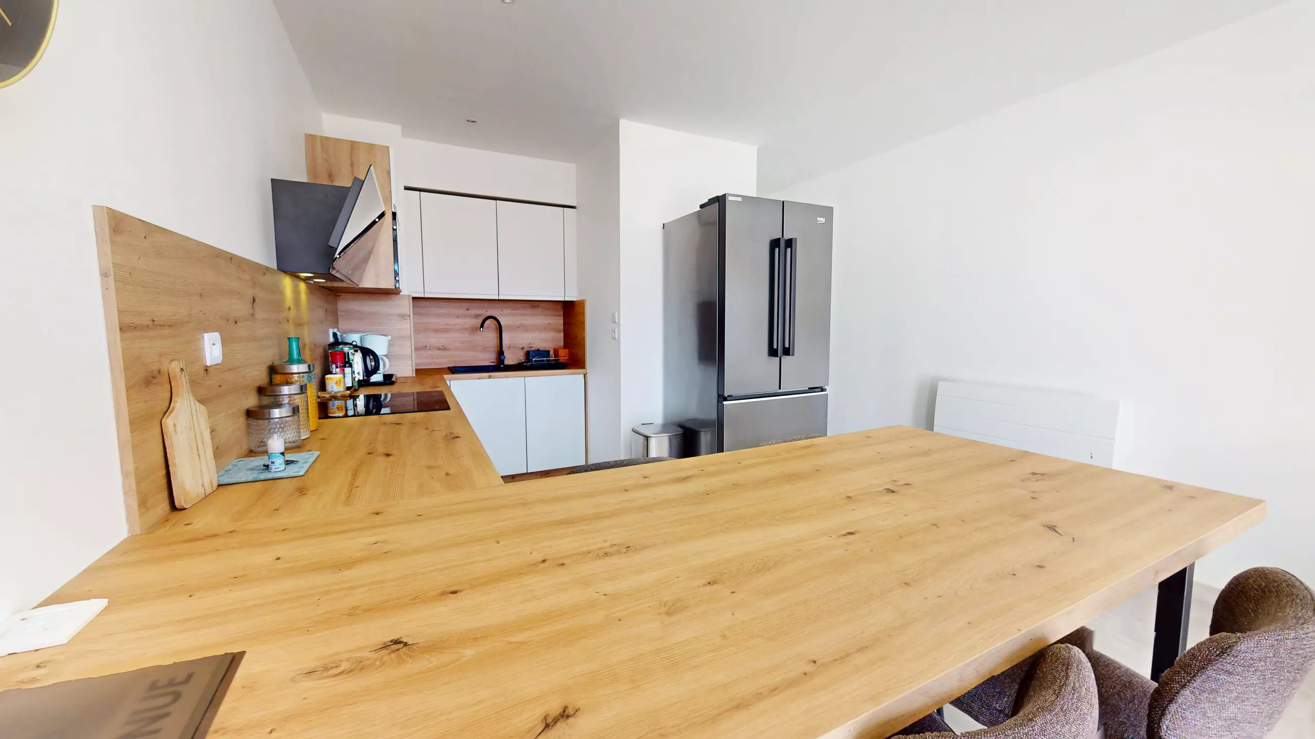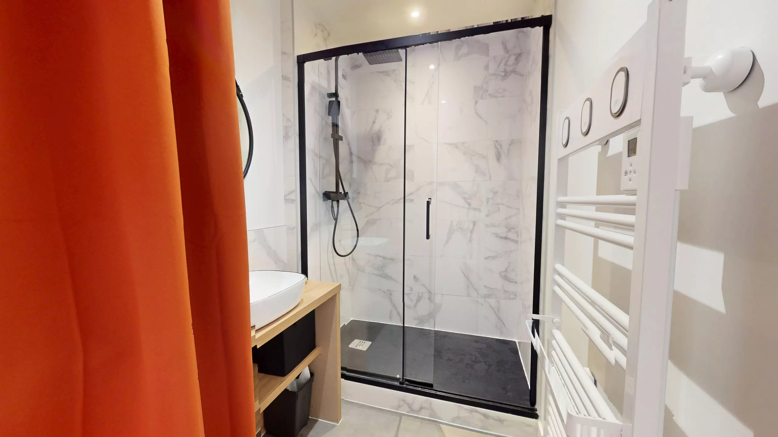 The apartment has a separate bedroom with a 160x190cm double bed, perfect for quiet and restful nights. The very modern bathroom has a large shower, and the toilet is separate for added comfort.