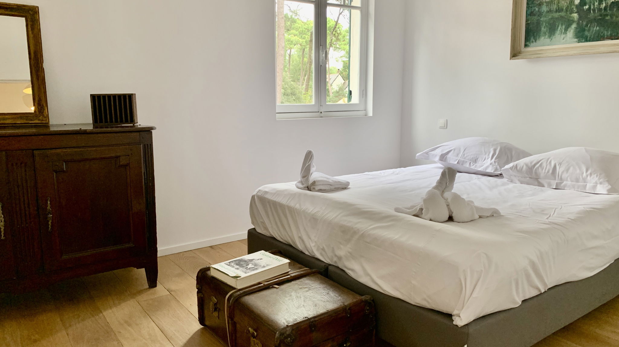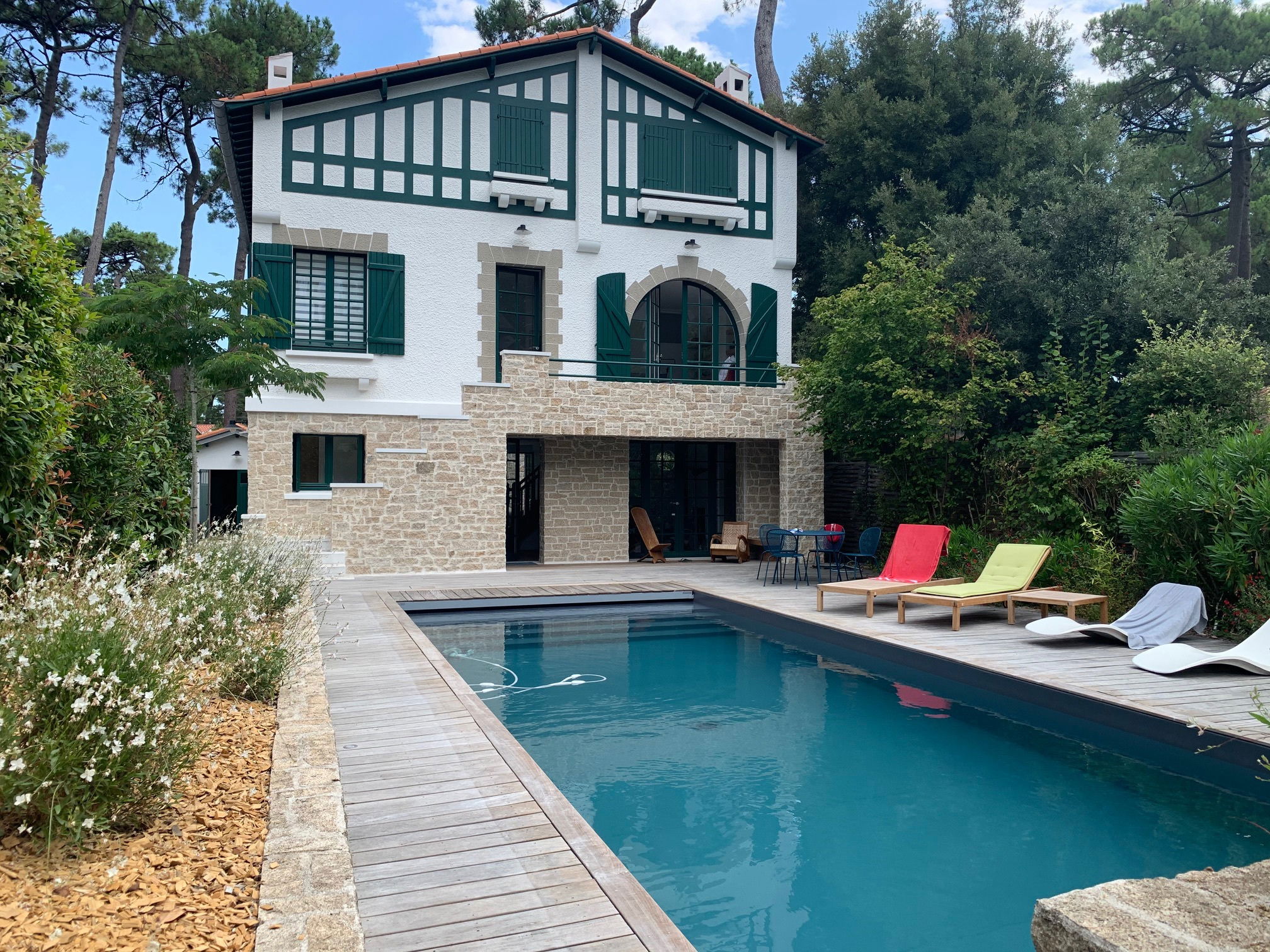 Superb fully renovated villa, close to the Tennis Garden in La Baule. In a quiet and residential area, this villa offers a view of its 9 mx 3 m heated swimming pool: Main villa: Entrance / hallway - Separate suspended WC with washbasin - Parquet floored living room with fireplace opening onto a south-facing terrace - Open kitchen overlooking terrace and garden with microwave, 5-burner piano + 2 ovens and bain-marie, cooker hood, fridge/freezer, dishwasher, wine cellar - 1st floor: Landing serving Bedroom n°1 with 180/200 bed and dressing room + adjoining bathroom and WC - Lingerie with washing machine and dryer - TV lounge. 2nd floor: Bedroom n°2 (dormitory) with 6 90/200 beds and cupboard + adjoining bathroom with cupboard - Independent suspended WC with washbasin - Bedroom n°3 with 160/200 bed and cupboard + adjoining shower room Annex house: Bedroom n°4 with 160/200 bed + wardrobe - shower room - Independent suspended WC - Additional kitchen (fridge, 2 induction rings, multifunction oven - Bedroom n°5 with 160/200 bed + wardrobe - bathroom Garage / boiler room with fridge and freezer - Enclosed garden Registration number at the town hall: 4405500150251