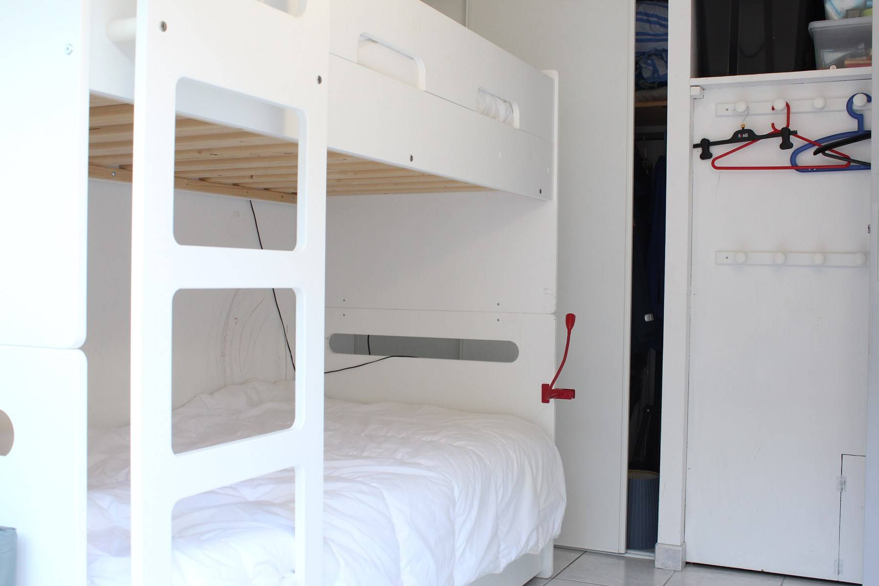 La Baule (44) - Town center 5-room house - 110m² approximately - up to 6 people Accommodation: In the heart of LA BAULE, this atypical house on 4 levels includes: on the raised ground floor: small entrance, a living room , a kitchenette, a shower room with wc, a bathroom; on the 1st floor: a living room, a bedroom for 2 people; on the 2nd floor: a bedroom for 2 people, a cupboard with integrated kitchen opening onto a terrace; in the semi-basement: a small living room, a small bedroom with 2 bunk beds.