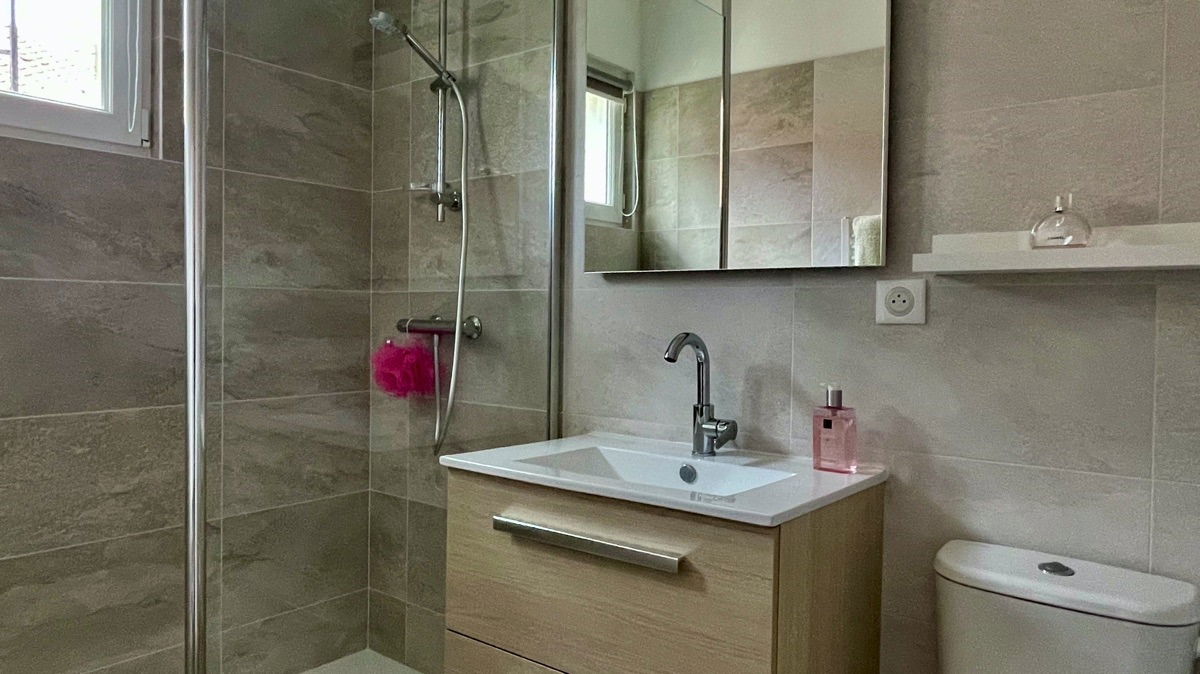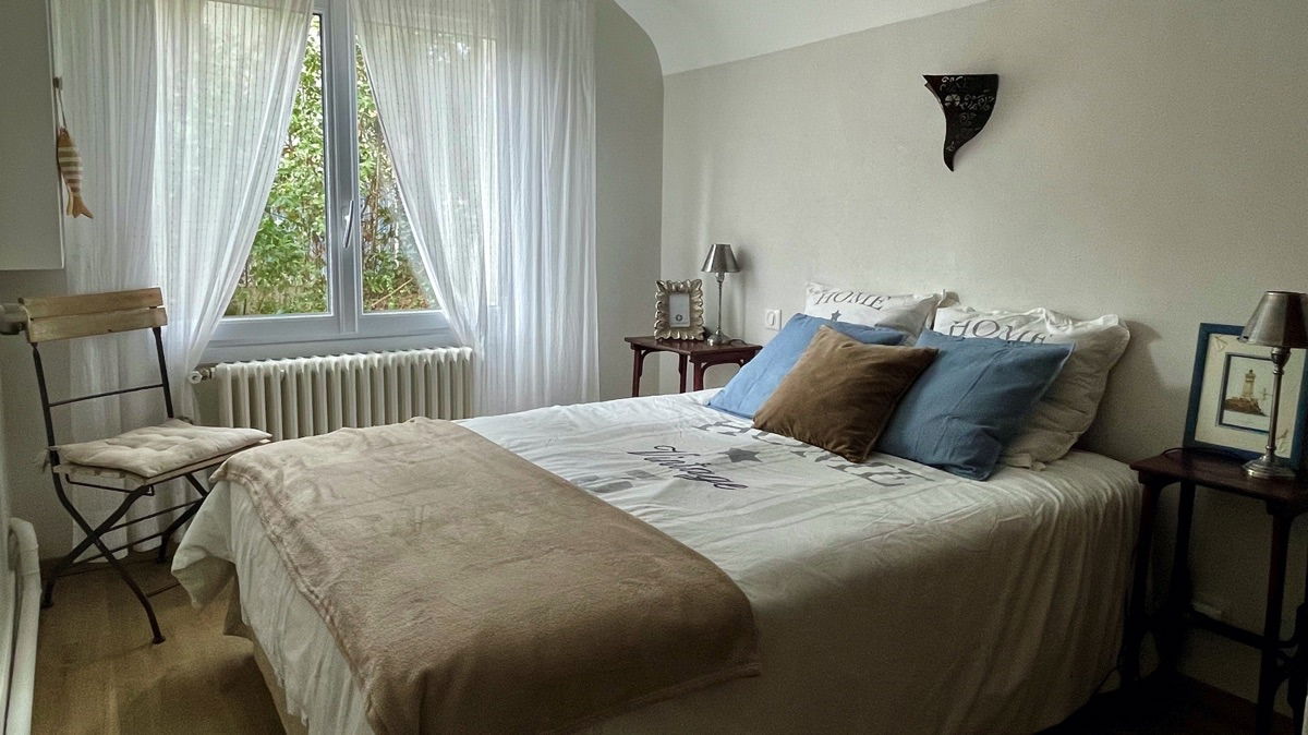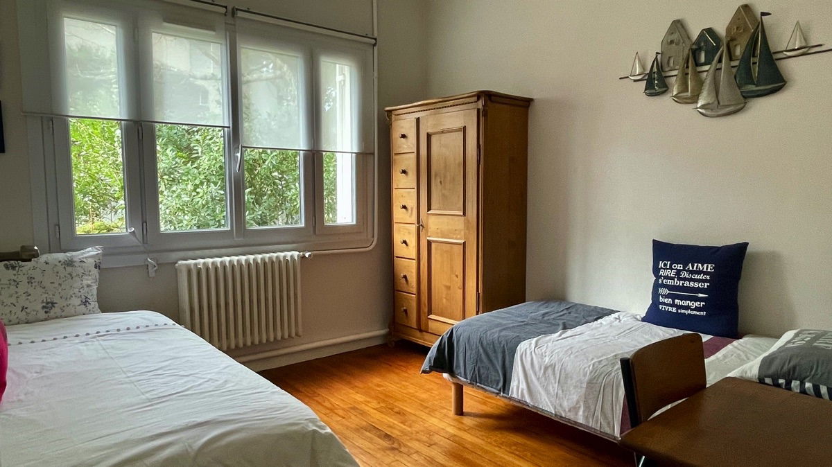 In the district of the Aquabaule swimming pool, the tennis Garden and 300 m from the beach, you will spend a pleasant holiday in this Basque-style villa built in lush greenery. The villa includes an entrance to the living room (flat screen TV - HIFI system) with Kitchen A/E (Induction hob - Hood - Microwave - Coffee maker - Oven - Dishwasher - Fridge / Freezer) all overlooking the garden and terrace - Hallway - Bedroom n°1 with 2 90/190 beds + wardrobe - Bedroom n°2 with 140/190 bed with adjoining wardrobe and shower room (ultra-flat shower + basin + towel dryer and WC) Bedroom 3 with double bed 140/190 + wardrobe - EPS - Lingerie with LL + SL with access to the garden - WC ind. Parking within the grounds of the Villa - WIFI CONNECTION.