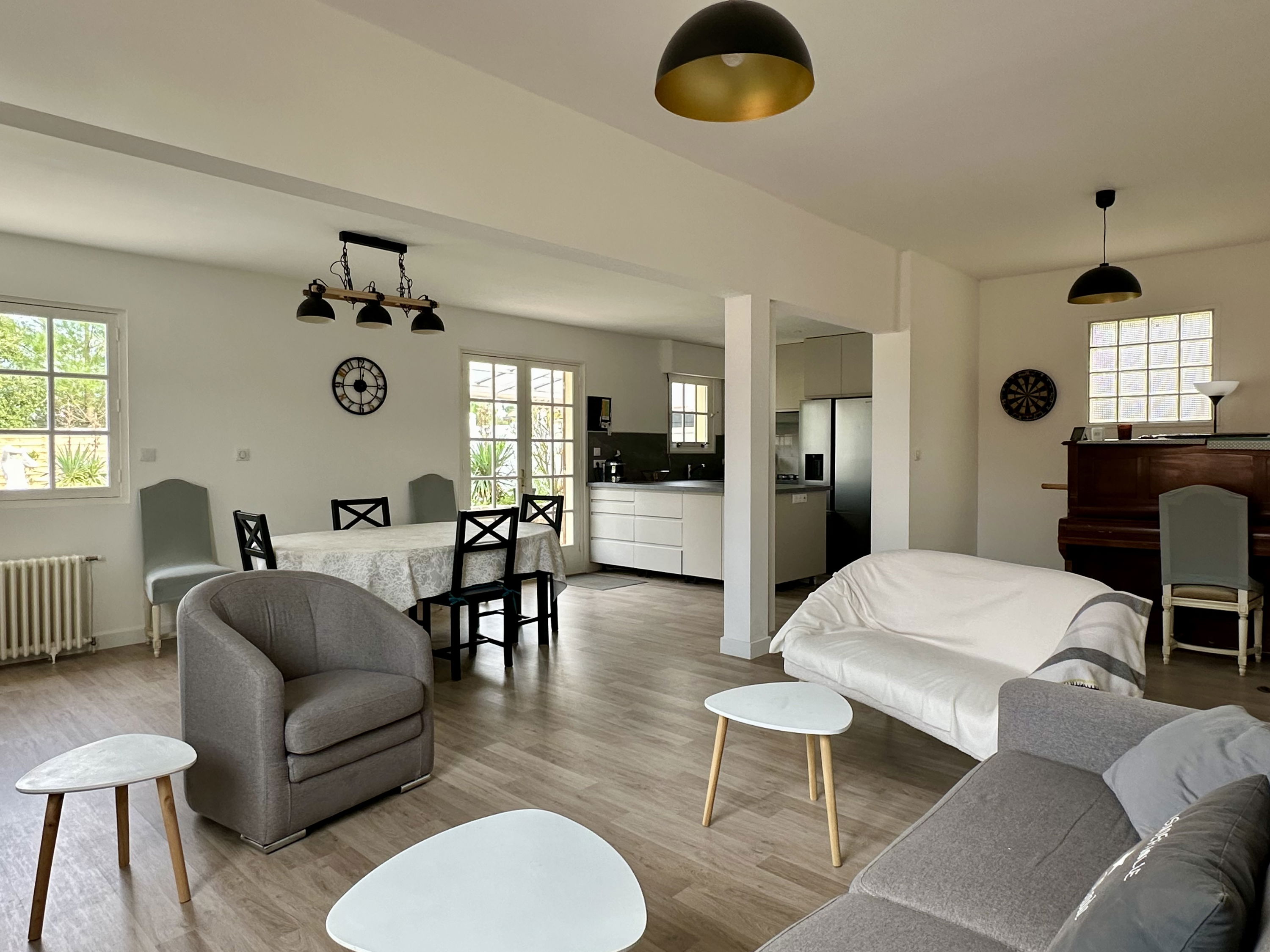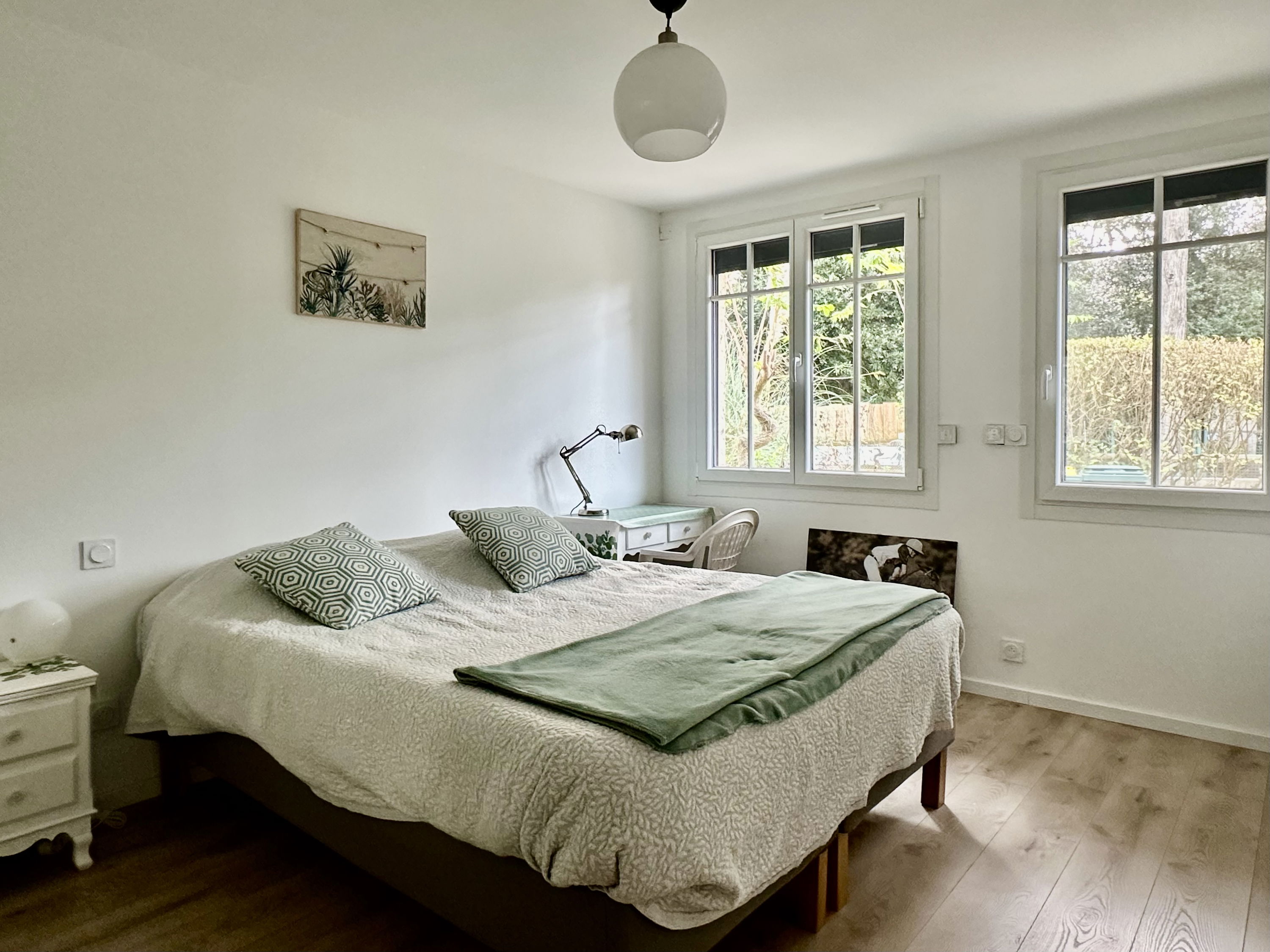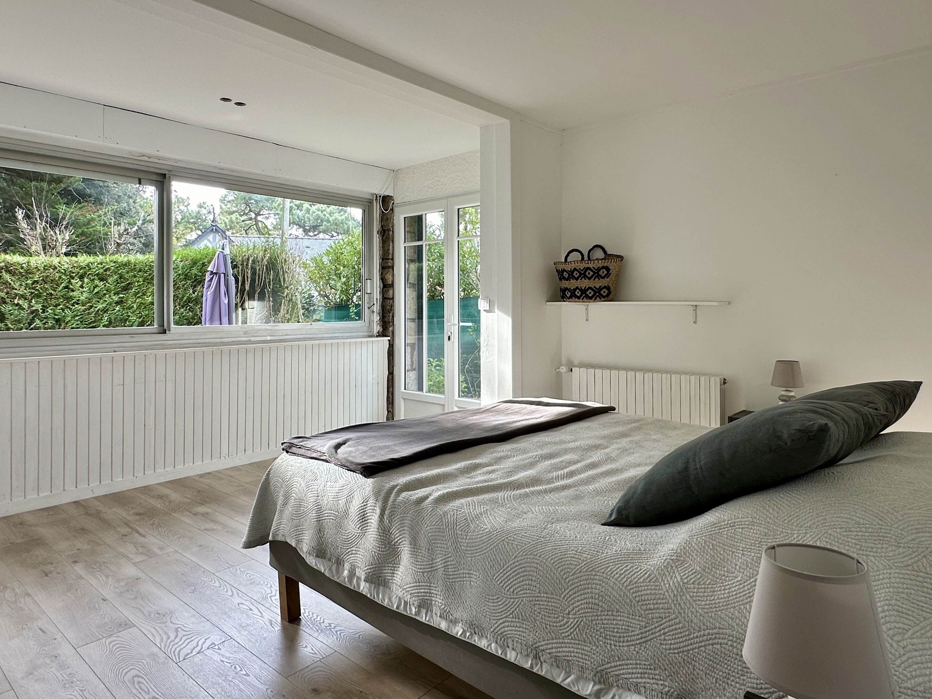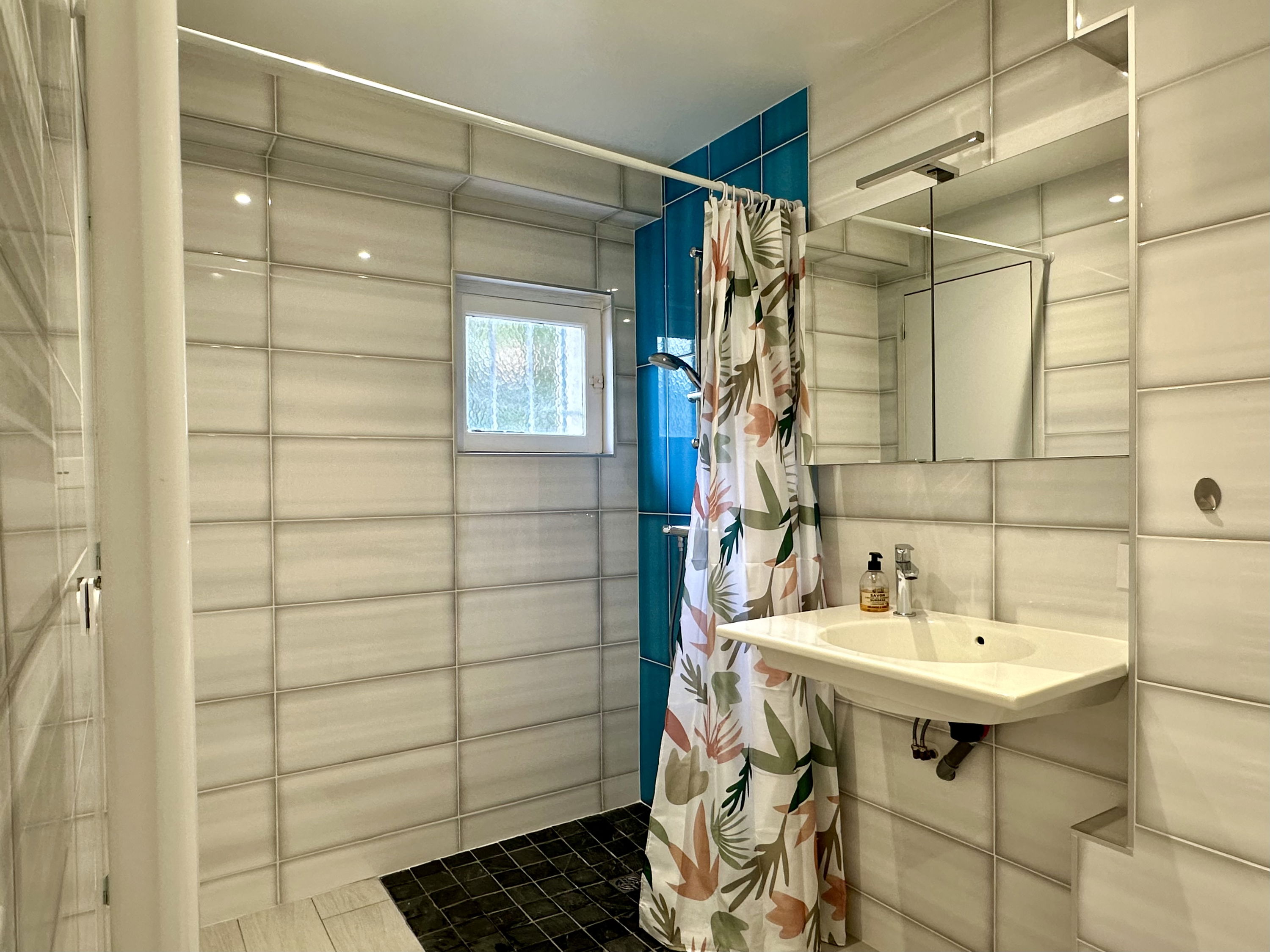 On the raised ground floor, you will find a bright living room equipped with a TV (with Chromecast) and a piano, which opens onto a large terrace and garden with an outdoor dining area for eight people, garden furniture and a charcoal barbecue, perfect for al fresco dining. The open kitchen is fully equipped with an oven, microwave, American fridge, induction and gas hobs, extractor hood, as well as coffee makers and other practical appliances. The spacious and intimate master suite has a 150/200 bed, a dressing room and a private bathroom with bathtub, vanity unit and heated towel rail. A separate toilet with washbasin completes this level.