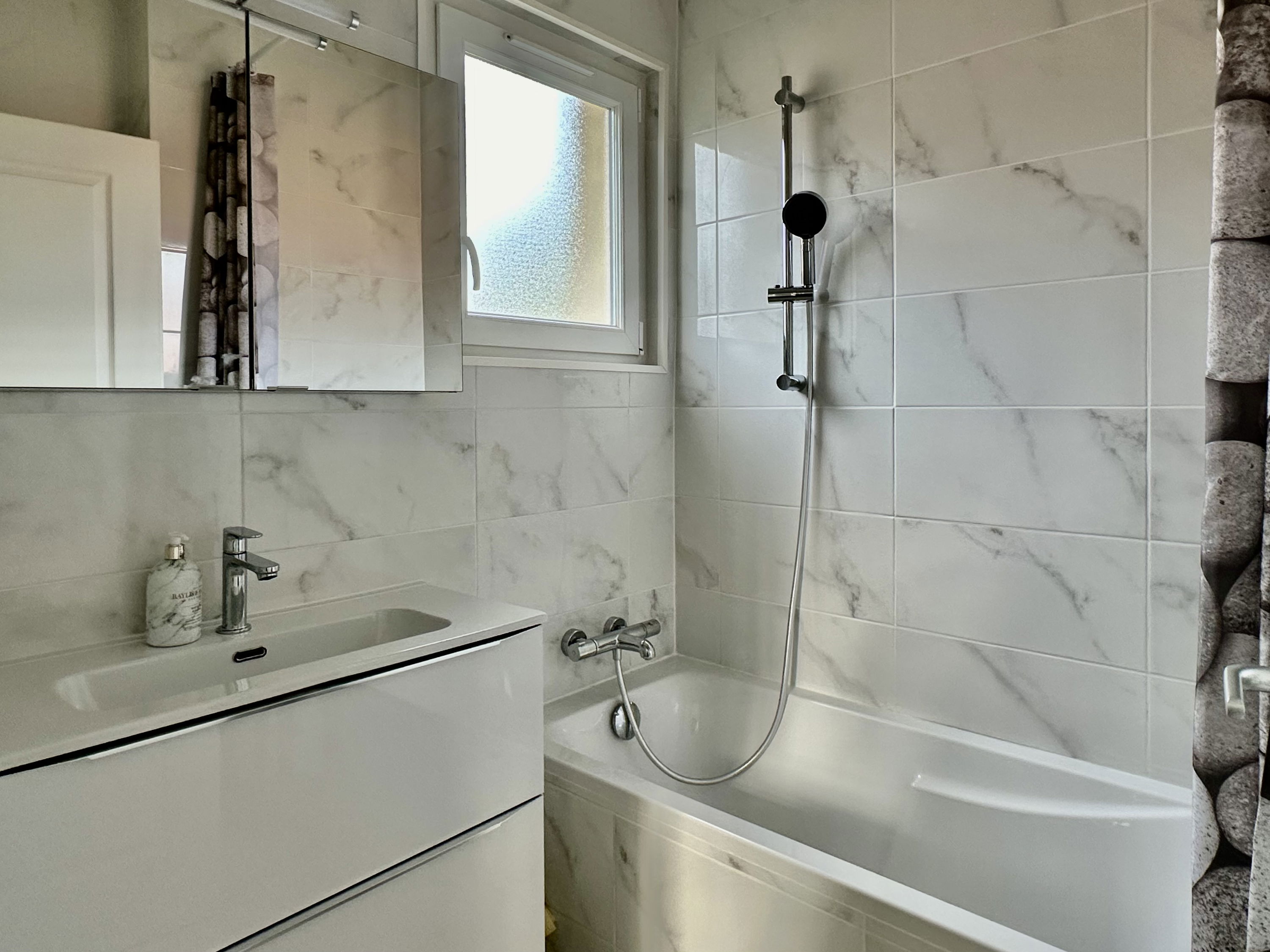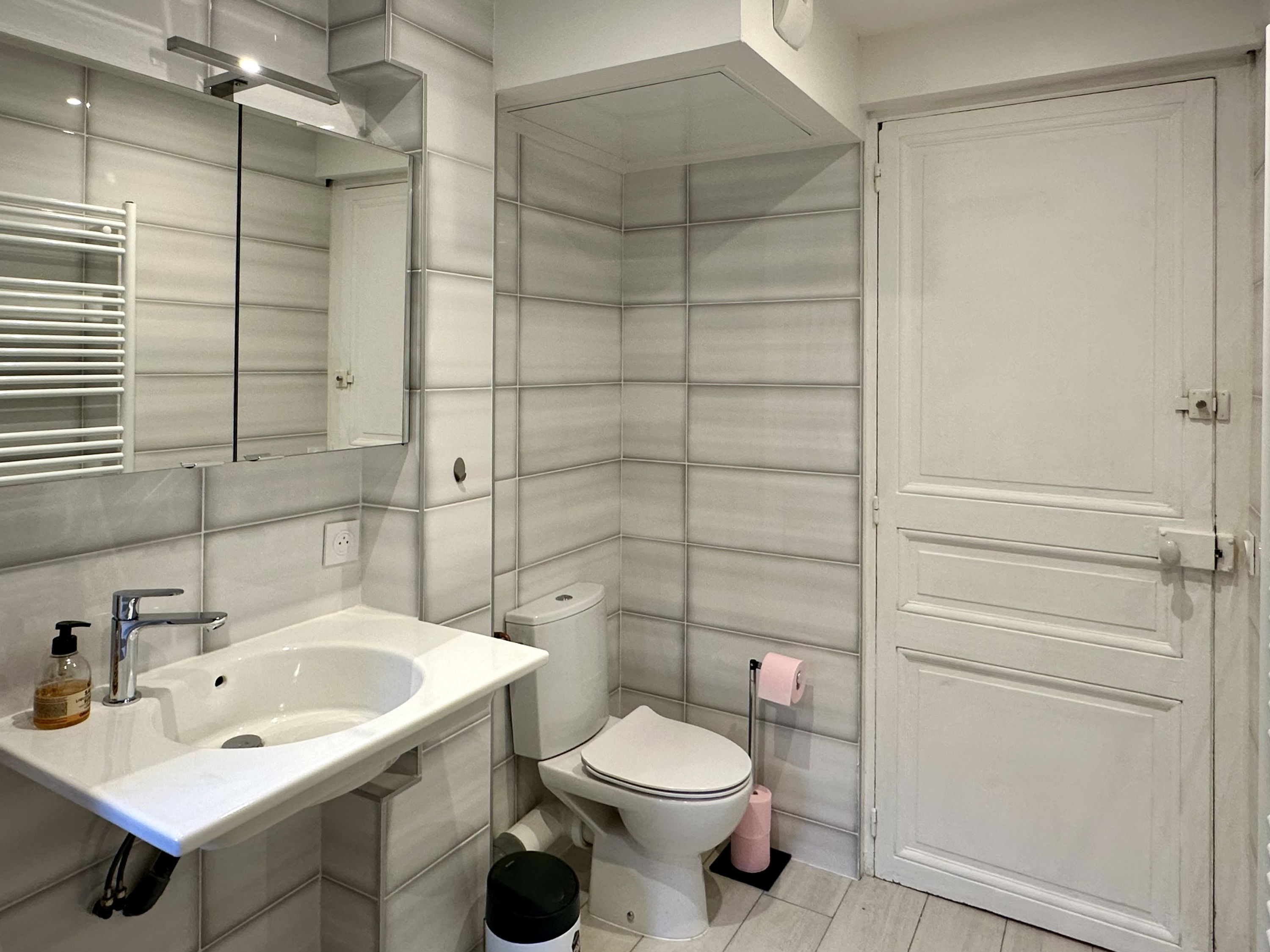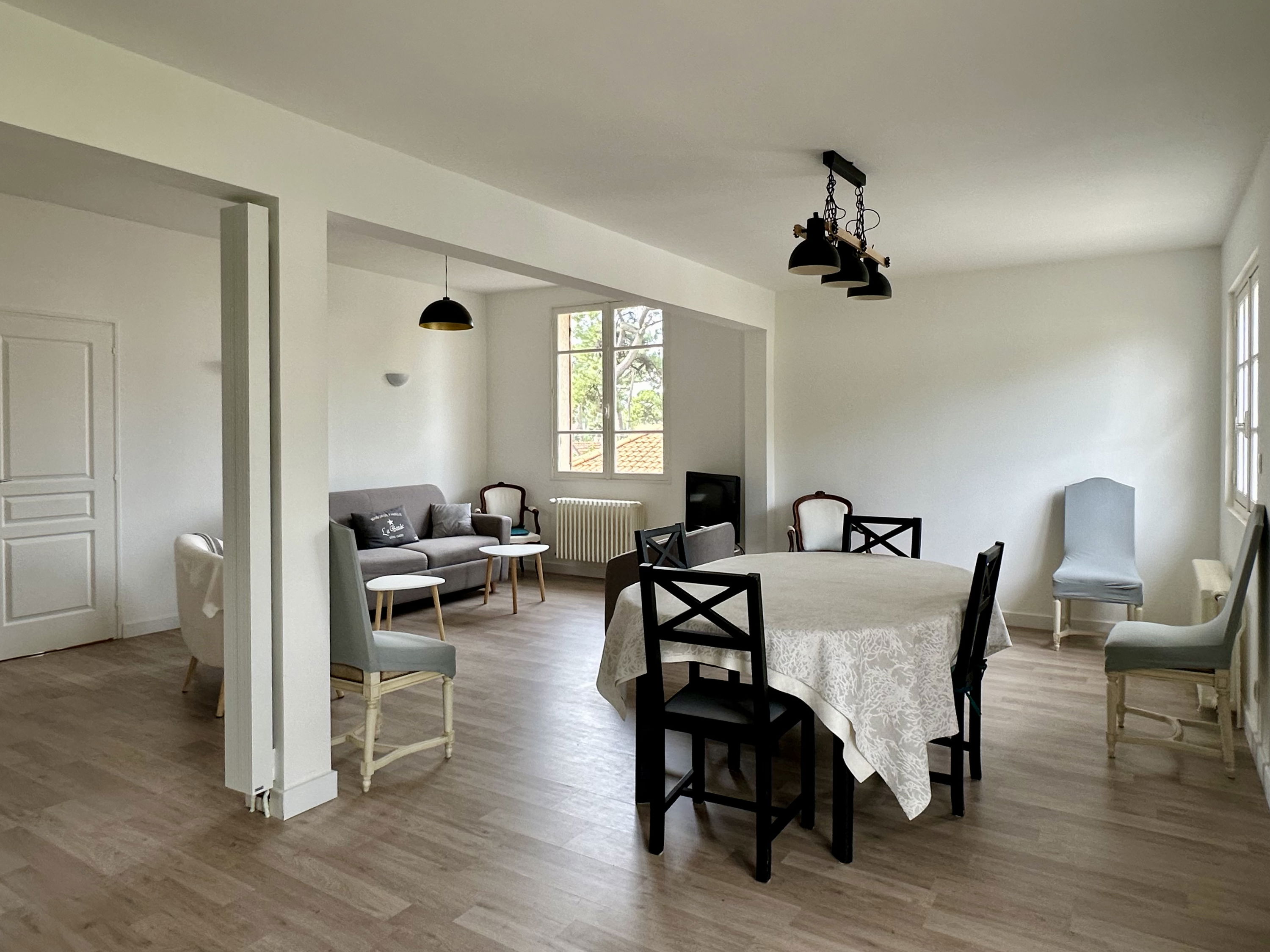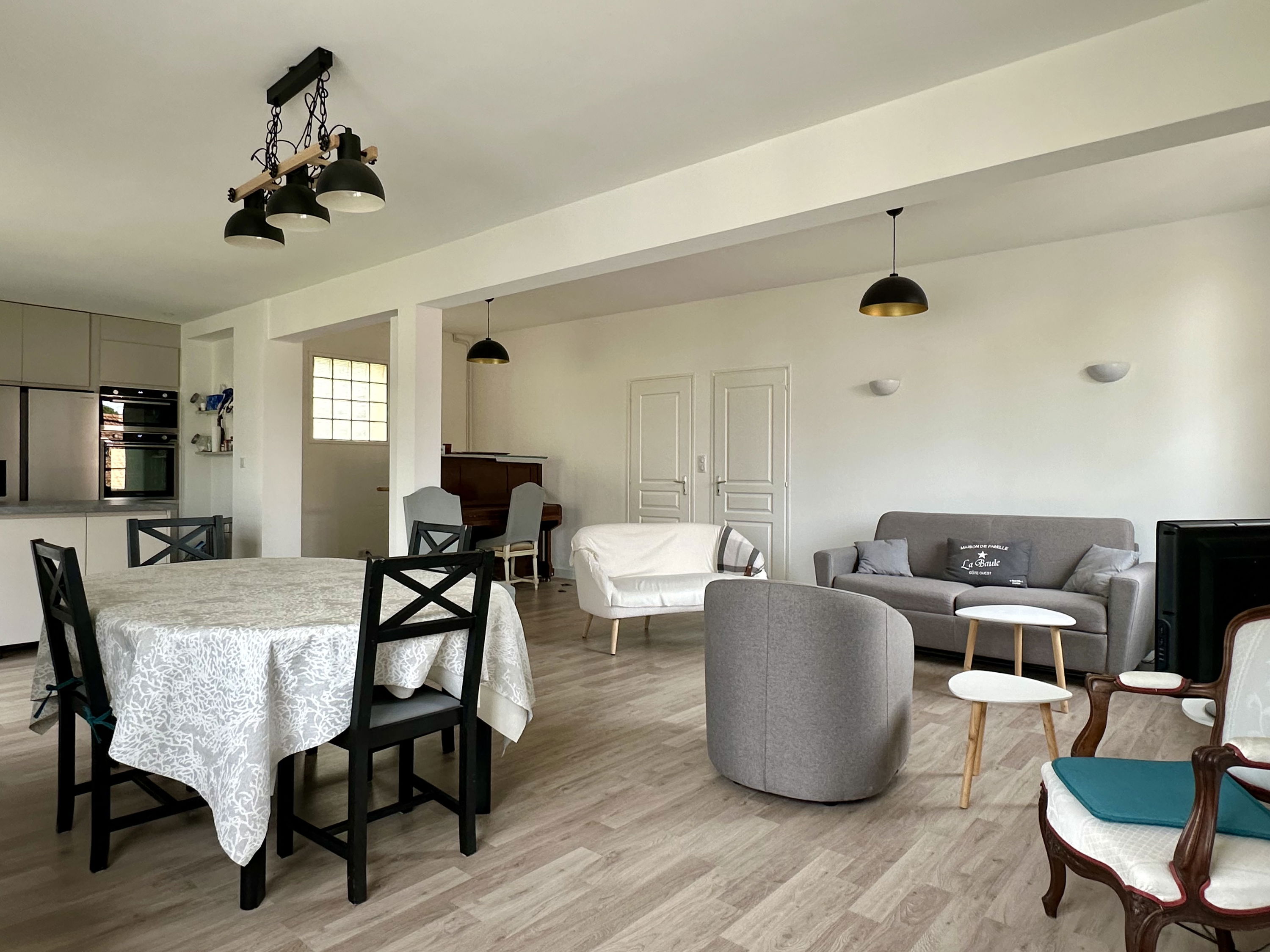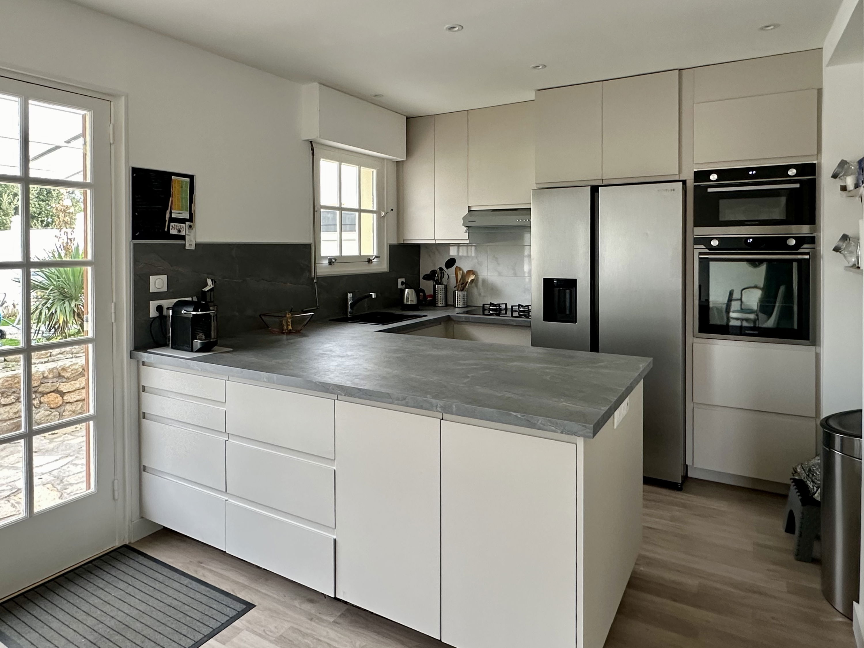 On the raised ground floor, you will find a bright living room equipped with a TV (with Chromecast) and a piano, which opens onto a large terrace and garden with an outdoor dining area for eight people, garden furniture and a charcoal barbecue, perfect for al fresco dining. The open kitchen is fully equipped with an oven, microwave, American fridge, induction and gas hobs, extractor hood, as well as coffee makers and other practical appliances. The spacious and intimate master suite has a 150/200 bed, a dressing room and a private bathroom with bathtub, vanity unit and heated towel rail. A separate toilet with washbasin completes this level.