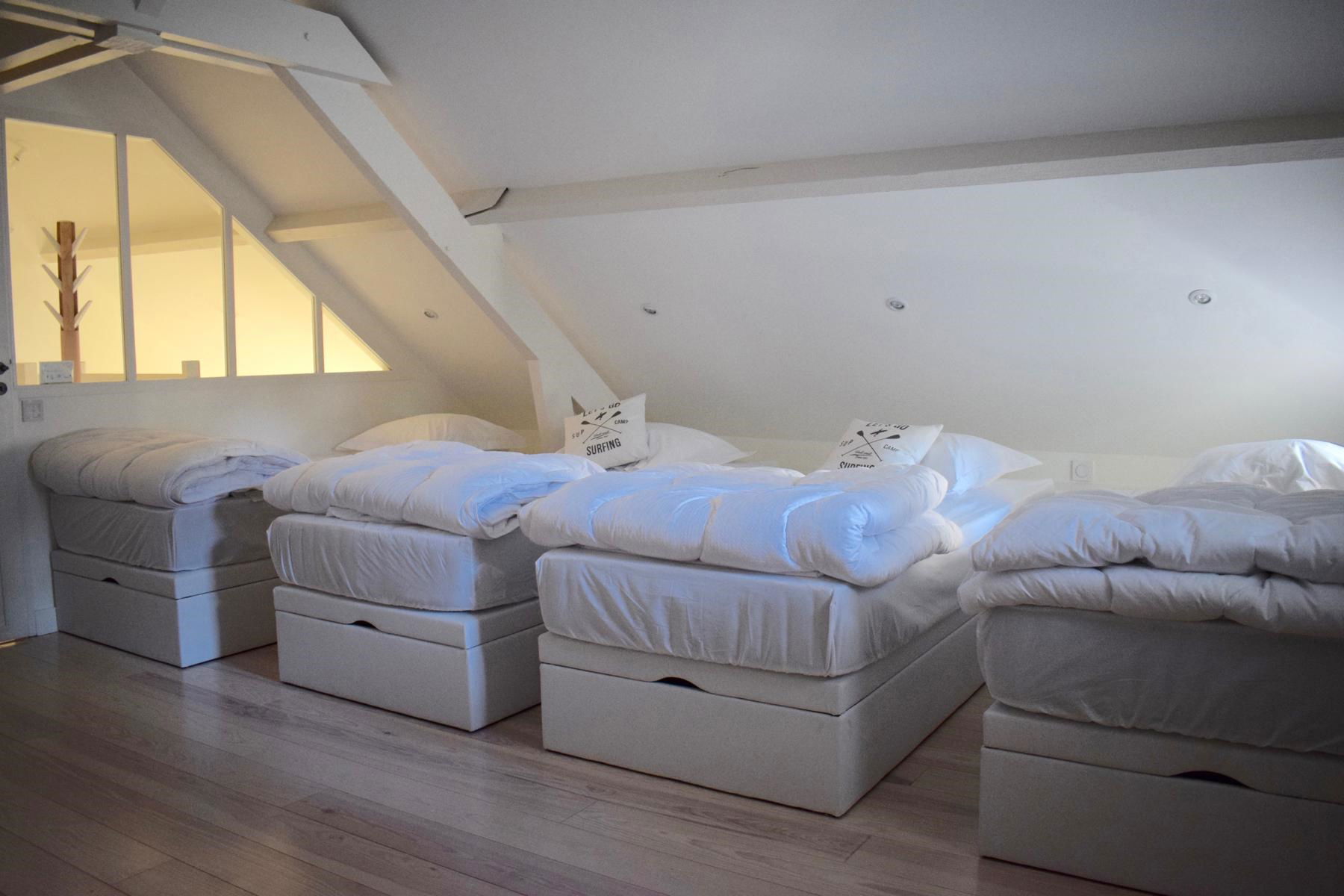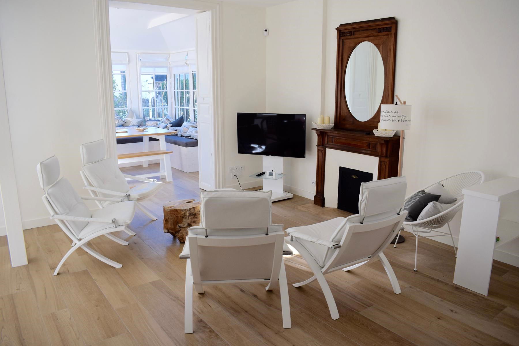 You will be charmed by this superb villa entirely renovated in the very popular Area of the Beach Benedict in La Baule. Only 200 m from the beach and 400 m from the shops to the Casino, this villa offers all on foot for your holiday. In a quiet setting, it comprises : Entrance living room - Bow window built in living room - open Kitchen overlooking the garden with Micro-waves, Oven, induction hob, Extractor, Fridge/freezer, dishwasher - Bedroom n°1 with a bed of 140/190 and closet + en-suite bathroom - separate TOILET (closet with washing-machine). 1st floor : Landing serving Bedroom n°2 giving onto balcony with bed 160/200, closet and adjoining bathroom with WC - Bedroom n°3 with 2 single beds 80/200 and closet - separate TOILET with washing hands - shower Room - Bedroom n°4 with double bed 140/190 and closet + bathroom with WC. 2nd floor : Bedroom n°5 (bunkhouse) with 4 beds 90/200 and cupboard - shower Room. Enclosed garden.