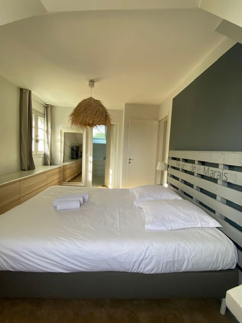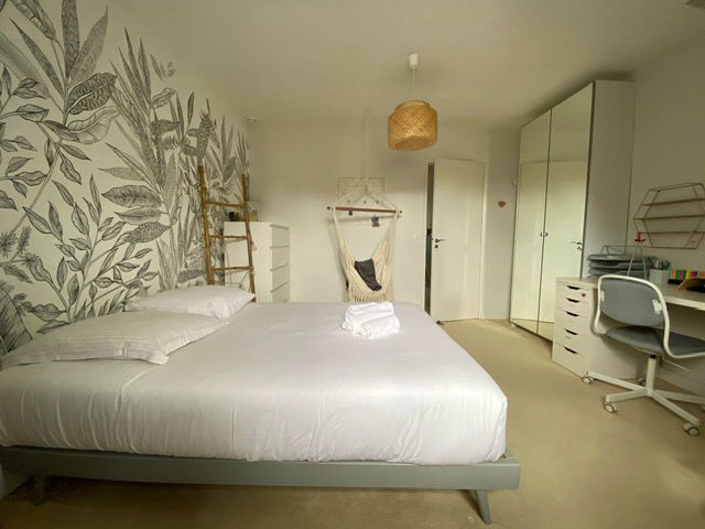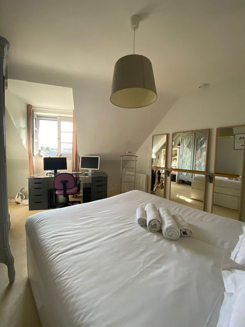 2 bedrooms with 140x190cm beds + wardrobes + desk, one of which is on the ground floor