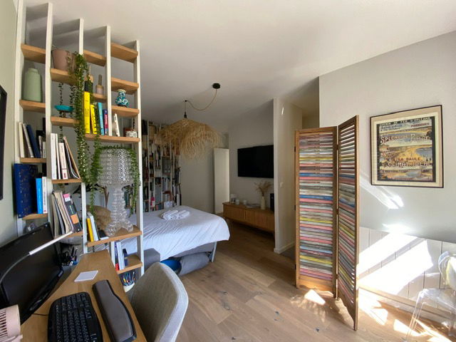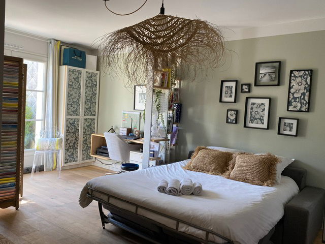 Office space opening onto the garden with TV and which can be used as a ground floor bedroom.