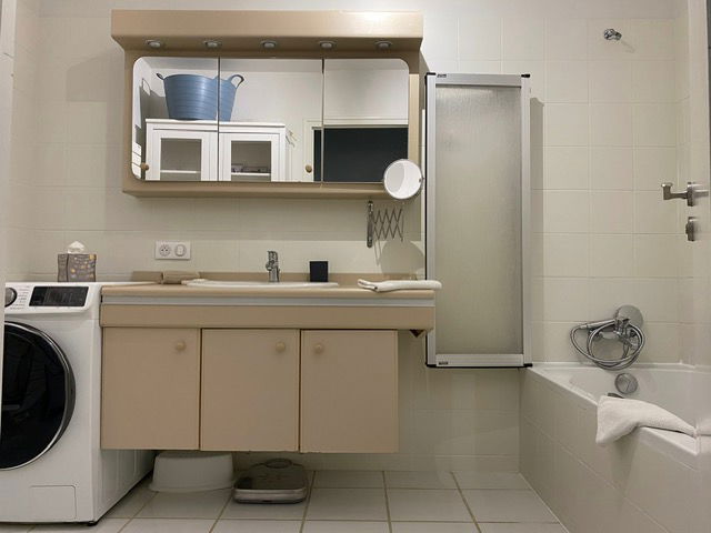 Bathroom with bathtub + washer-dryer