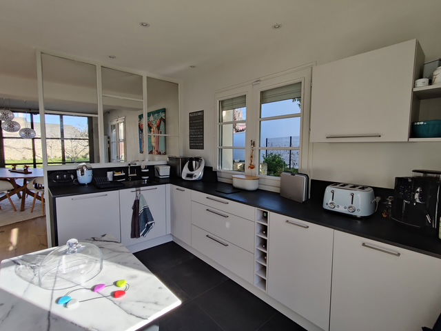 Fully equipped kitchen (induction hob, oven, microwave, dishwasher, fridge/freezer, bean-to-cup coffee machine, food processor)